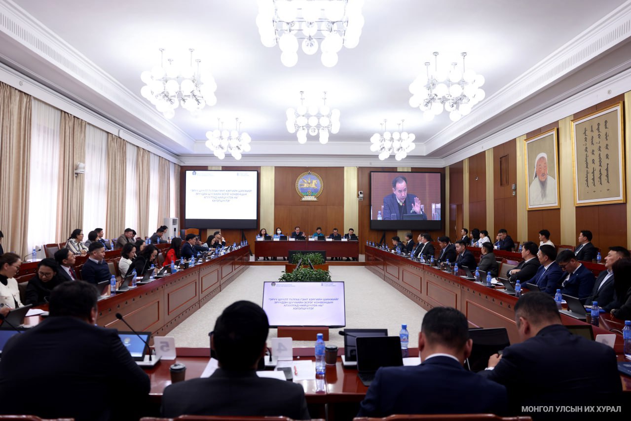 Улсын Их Хурлын Хууль зүйн байнгын хороо, Хүний эрх, эрх чөлөөг хангахтай холбоотой зарим хуульд нэмэлт, өөрчлөлт оруулах тухай хуулийн төслийг Байнгын хороо болон чуулганы нэгдсэн хуралдаанаар хэлэлцүүлэх бэлтгэл хангах, санал, дүгнэлтийн төсөл боловсруулах үүрэг бүхий ажлын хэсгээс Хүний эрхийн Үндэсний Комисстой хамтран “Эрүү шүүлт тулгах гэмт хэргийн шинжийг Эрүүдэн шүүхийн эсрэг конвенцын агуулгад нийцүүлэх нь” хэлэлцүүлгийг өнөөдөр /2025.05.07/ зохион байгуулав.