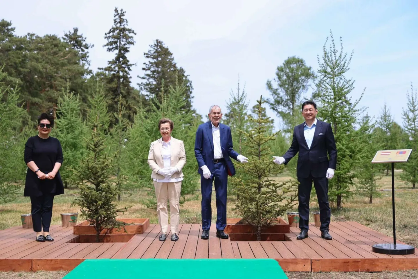 Монгол Улсын Ерөнхийлөгч Ухнаагийн Хүрэлсүх, гэргий Лувсандоржийн Болорцэцэг, Австри Улсын Ерөнхийлөгч Александр Ван дэр Беллен, түүний гэргий Дорис Шмидауэр нар уур амьсгалын өөрчлөлт, цөлжилт зэрэг дэлхий нийтэд тулгамдаж буй сорилтыг даван туулах хүч чармайлтад хувь нэмрээ оруулахыг бэлгэдэж Их тэнгэр цогцолборт дурсгалын мод тарилаа.