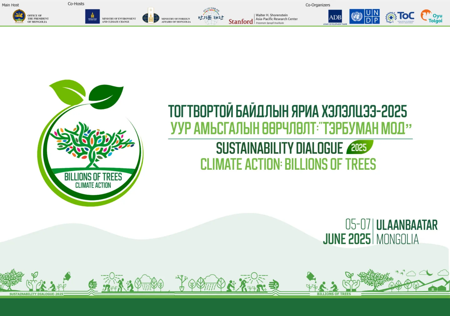 Чуулга уулзалтыг Монгол Улсын Ерөнхийлөгчийн Тамгын газар, Байгаль орчин, уур амьсгалын өөрчлөлтийн яам, Гадаад харилцааны яам, БНСУ-ын Ерөнхий нарийн бичгийн дарга асан, “Чингис хаан” одонт Бан Ги Мүний үүсгэн байгуулсан “Ирээдүйн сайн сайхны төлөө” сан, АНУ-ын Стэнфордын их сургуулийн Уолтер Х.Шоренштэйний “Ази-Номхон далайн судалгааны төв”, Монголын Тогтвортой санхүүжилтийн холбоо хамтран зохион байгуулна.