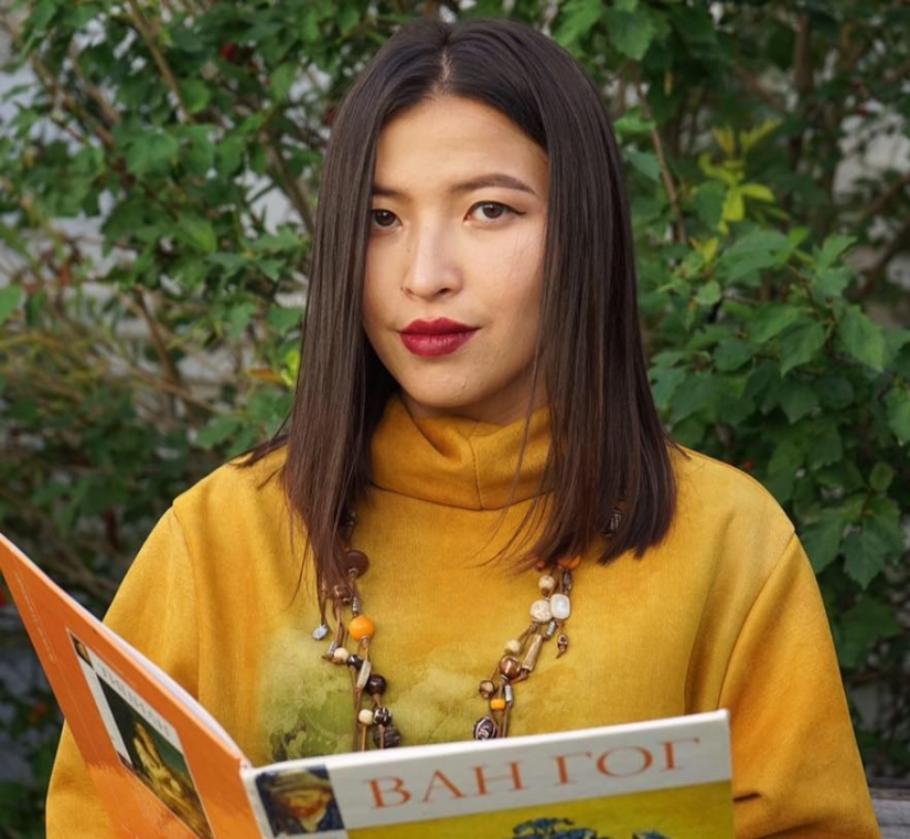 Эхлээд нэг хувийн дунд сургуульд сурч байгаад 45-р дунд сургуулийг төгссөн. “Сургууль нураасай” дууг сонссоор байгаад л төгсчихсөн хүн шүү дээ. (инээв). “Амина” сургуульд нэг жил суралцаад өөрийгөө зураач болох хүн биш юм байна гэдгээ ойлгосон. Урлагийн амьдрал хатуу учраас өөр зам сонгоё гэж бодож байсан ч урлаг судлаач болсон доо. 2013 онд МУИС-ийг урлаг судлаач мэргэжлээр төгссөн.