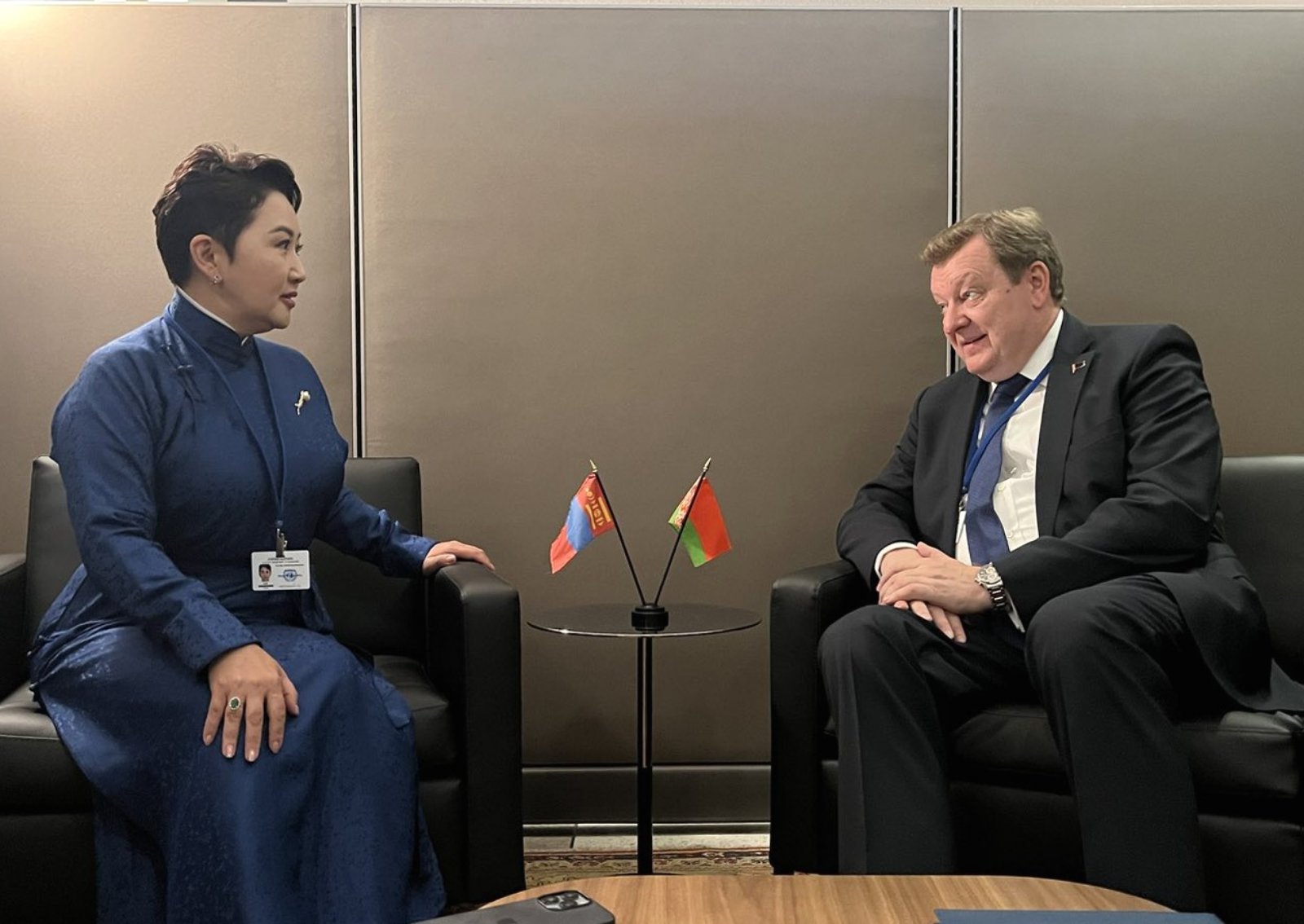 Монгол Улсын Гадаад харилцааны сайд Б.Батцэцэг НҮБ-ын Ерөнхий Ассамблейн 78 дугаар чуулганы Ерөнхий санал шүүмжлэлд оролцох хүрээнд 9 дүгээр сарын 20-ны өдөр Беларус Улсын Гадаад хэргийн сайд Сергей Алейниктэй НҮБ-ын Төв байранд уулзав.