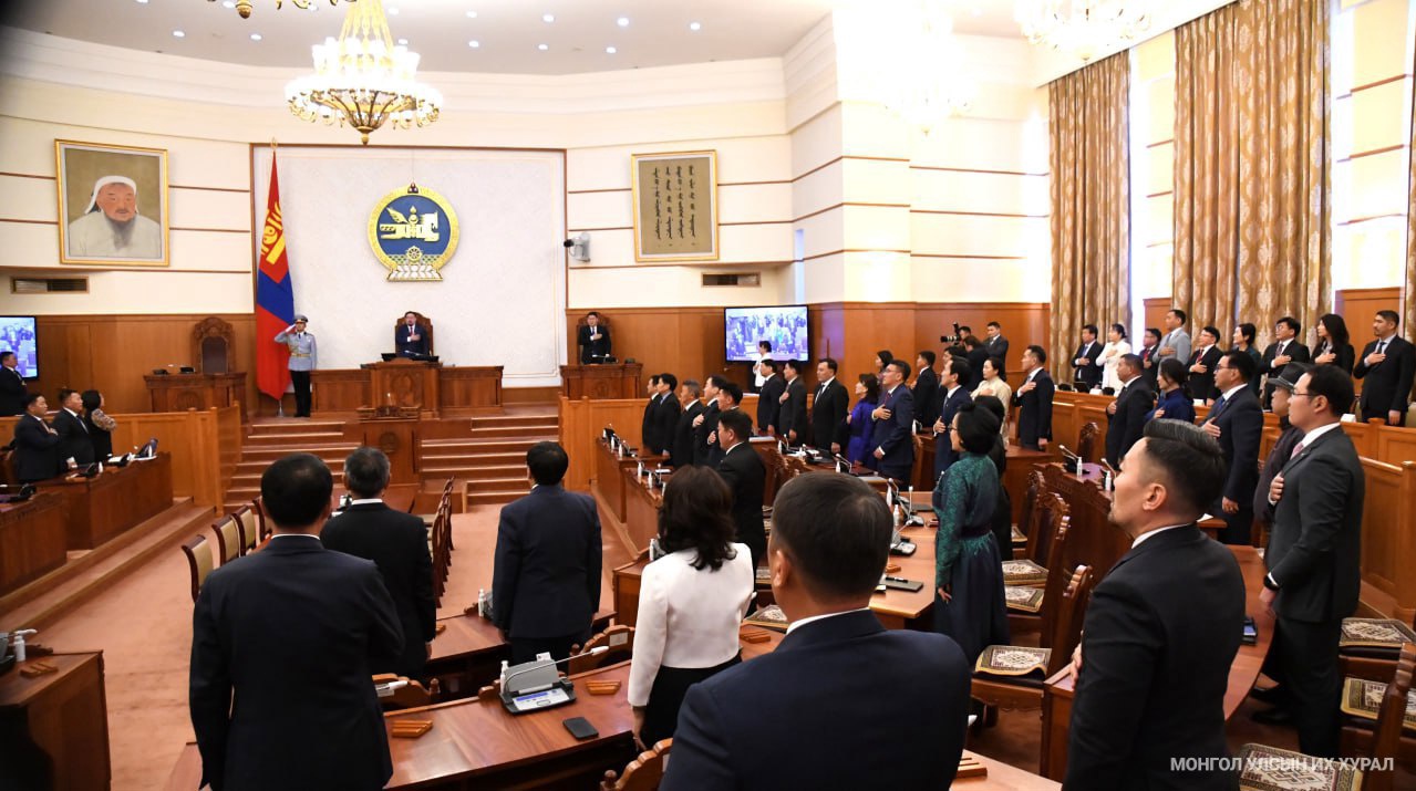Улсын Их Хурлын дарга үг хэлсний дараа Монгол Улсын Төрийн дуулал эгшиглэснээр намрын чуулганы нээлтийн ажиллагаа өндөрлөв