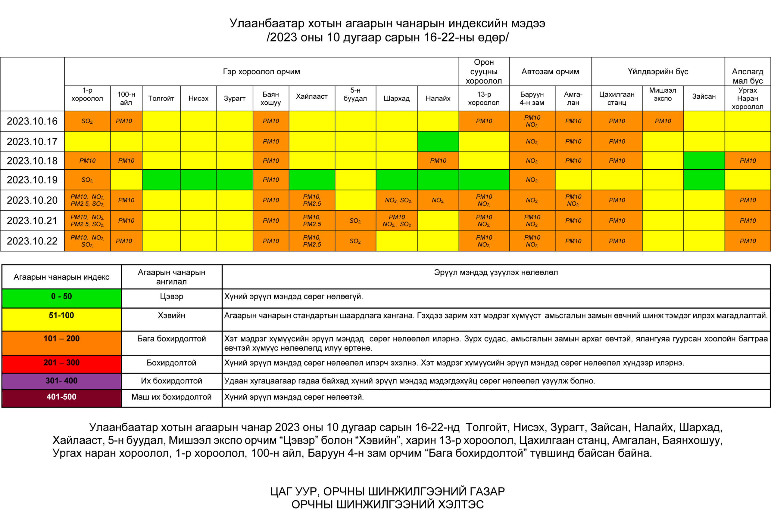 Улаанбаатар хотын агаарын чанарын мэдээ