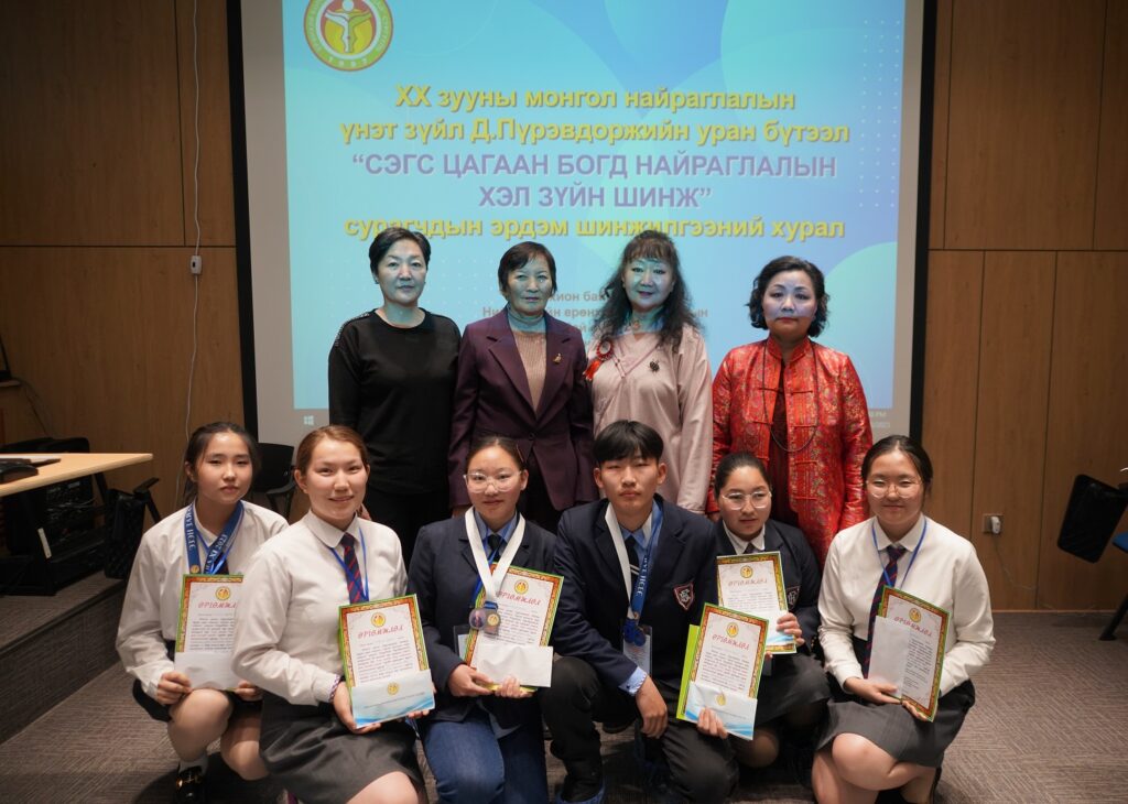 Илтгэлийн уралдаанд нийслэл болон орон нутгийн 11 сургуулийн  ахлах ангийн 16 сурагч оролцсоноос  шилдгийн шилдгээр Үй Цай сургуулийн 12б ангийн сурагч Г.Бямбагэрэлийн “Сэгс цагаан богд найраглал дахь хэлц холбоо үг”  сэдэвт илтгэл шалгарав.
