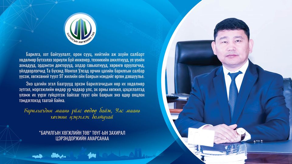 Барилга, хот байгуулалт, орон сууц, нийтийн аж ахуйн салбарын инженер, техникийн ажилтнууд, үе үеийн ахмадууд, эрдэмтэн докторууд, алдар гавьяатнууд, хөрөнгө оруулагчид, үйлдвэрлэгчид Та бүхэнд Монгол Улсад орчин цагийн барилгын салбар үүсэж, хөгжсөний түүхт 97 жилийн ойн баярын мэндийг өргөн дэвшүүлье.