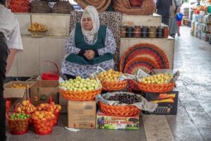 Наашаа ирэхийн өмнөхөн, зочид буудлын дэлгүүрийн худалдагч биднийг монголчууд хэмээн ихэд дотносон яриа хөөрөө дэлгэж, хамгийн эхлээд захаар ор, тэгээд цаашил гэсэн юм. Тэр худалдагч “Узбек хүний өдөр тутмын амьдрал захаас эхэлдэг юм. Сайхан үнэрт талх, шинэхэн жимс ногоогоо захаас л авна шүү дээ.