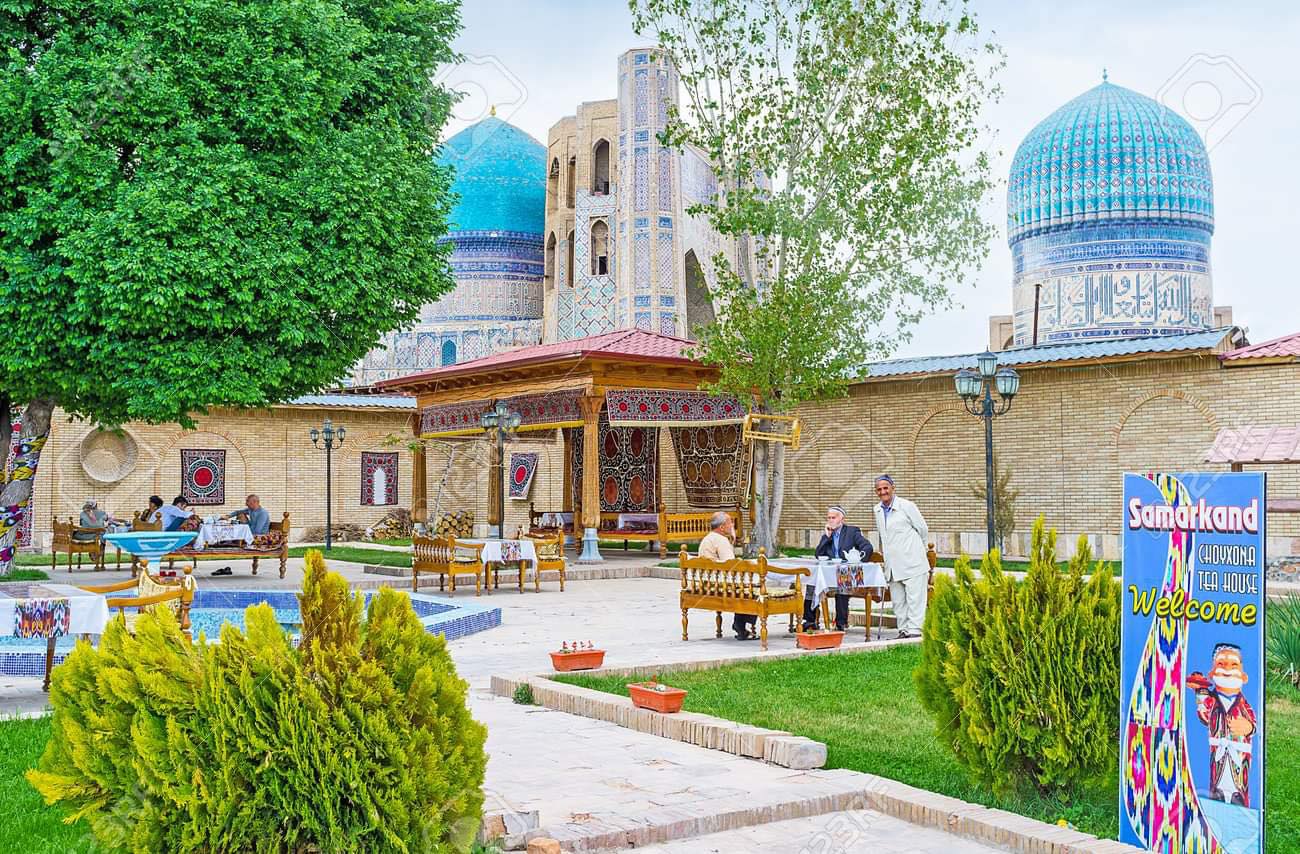 Хуучны энэ зах, энэ хотоор алдарт “Торгоны зам” дайран гарч, тэмээн жингийн цуваа мянга мянган жил хөвөрчээ. Энэ мэт олон сайхан домог түүхтэй нутаг аж. Номхон далайгаас Газар дундын тэнгис хүрэх замын яг тэг голд нь Самарканд хот байж таарч. Үл тасрах жингийн цуваа үүгээр дайрч цаашлан цаашилсаар Энэтхэг, Перс, Араб, Ром, Франц Грек, Египет, Франц хүрдэг байж. Хамгийн анх, МЭӨ 121 онд эртний Хятадын Хан улсын нийслэл Чанань (Иань) хотоос торго, хүрэл толь ачсан тэмээн жингийн цуваа торгоны замын гараа эхэлсэн гэдэг.