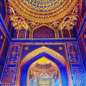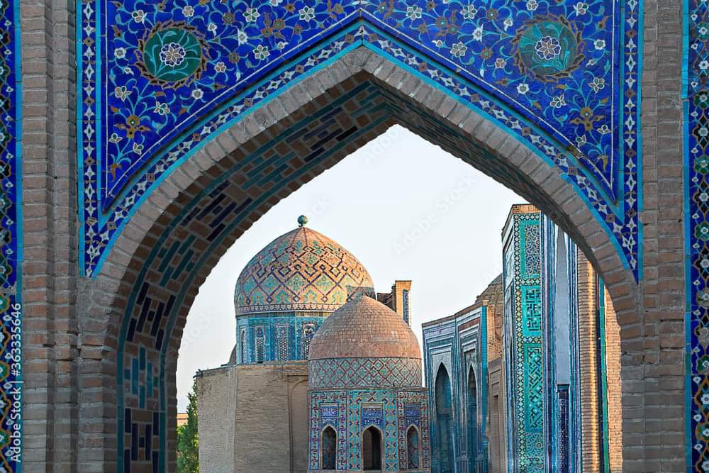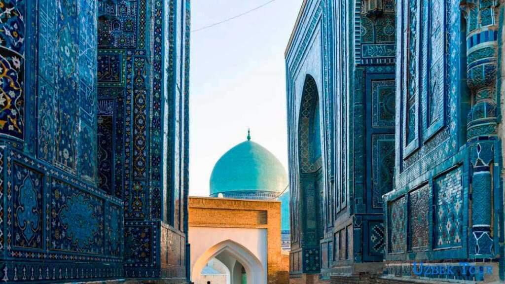 Үдийн хоолны дараа, “Шахи Зинда” зүглэн явах замд хэдэн настай франц, испани жуулчидтай зам нийлэв. Ойр зуурханыг хөөрөлдөж ар араасаа цувралдаж, замдаа элдвийг харж сонирхож явсаар зорьсон газраа ирцгээлээ. Алдарт “ “Шахи Зинда- Амьд хаан” сүм буханууд гэдэг үнэхээр дуу алдам үзэсгэлэнт хэрнээ маш ахархан гудамж аж. Бидний хэлдгээр плитаг гүн хөх, цайвар цэнхэр, цагаанаар зурж, сийлж, оёж хатгасан мэт урлажээ. Тансаг чамин хээнцэр урласан бунхан хаалгууд мөнх хөх тэнгэртэй өнгө хоршин сүндэрлэнэ.