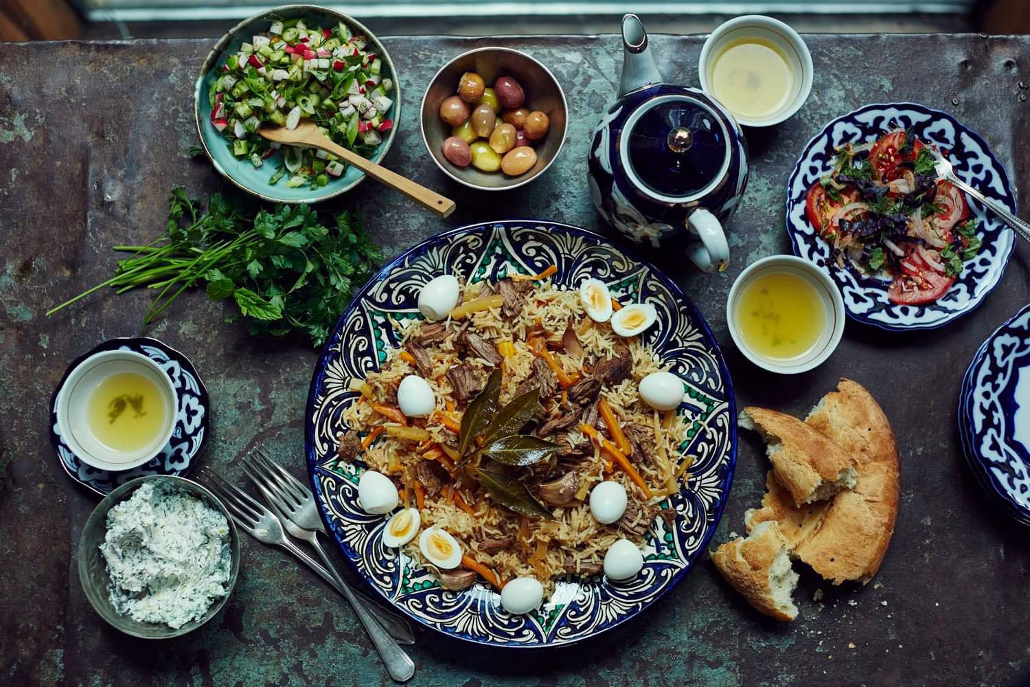 Биби-Ханумын сүмийн хажуу бөөрөн дэх домогт хатны нэртэй зоогийн газарт үдийн цайгаа уухаар орцгоов. Узбекийн уламжлалт хоолны үнэр хамар цоргих нь нэн таатай. Сэрүүхэн өдөр, цар мэт хавтгай шаазан таваг дүүрэн амталсан будаан дээр тос даасан хонины мах, сүүл, үхрийн мах давхарлан овоолсон жинхэнэ Самарканд плов идэхийн таатайг бүр ярих юм биш.