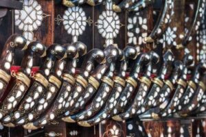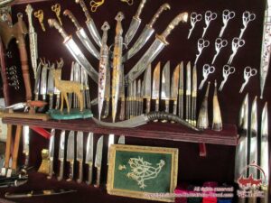 Худалдагч залуу янз бүрийн хийцтэй хутгануудаа надад зарах санаатай байгаа бололтой. Нэг хартал хамар дор өчнөөн олон махир, шовгор түмэн хэлбэр бүхий зэс, гууль, төмрөн хутга мэс овоолон тавьчихав. Тэгж байснаа цул улаан, шар шигтгээ болсон төө хүрэхгүй ганган хутга гаргаж: