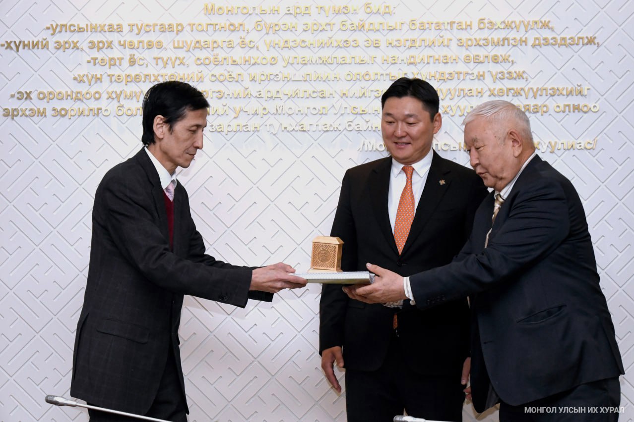 Төсвийн тогтвортой байдлын зөвлөлийн дарга Н.Энхбаярт УИХ-ын гишүүн, Төсвийн байнгын хорооны дарга Г.Тэмүүлэн, Төсвийн тогтвортой байдлын дарга асан Д.Даваасамбуу нар тамга тэмдэг болон 2018-2023 оны үйл ажиллагааны тайланг гардуулан өглөө.