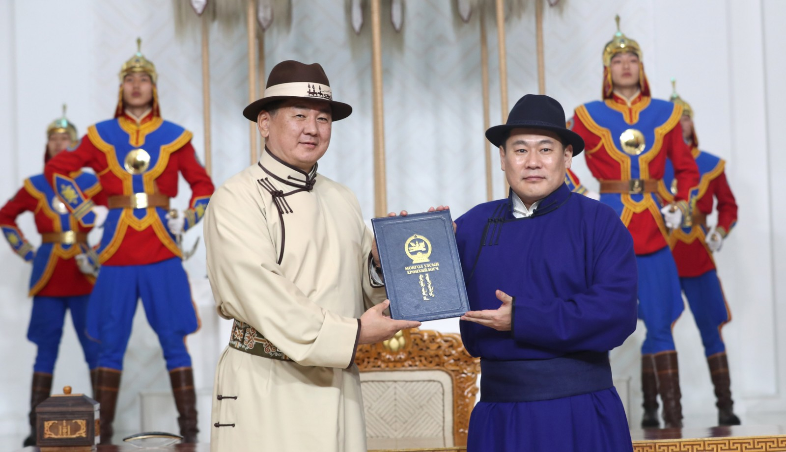 Ерөнхийлөгч У.Хүрэлсүх “Морин хуурыг эрхэмлэн дээдэлж, түгээн дэлгэрүүлэх тухай” зарлигийг Монгол Улсын Ерөнхий сайд Л.Оюун-Эрдэнэд гардуулан өглөө.