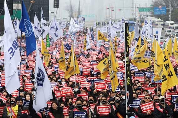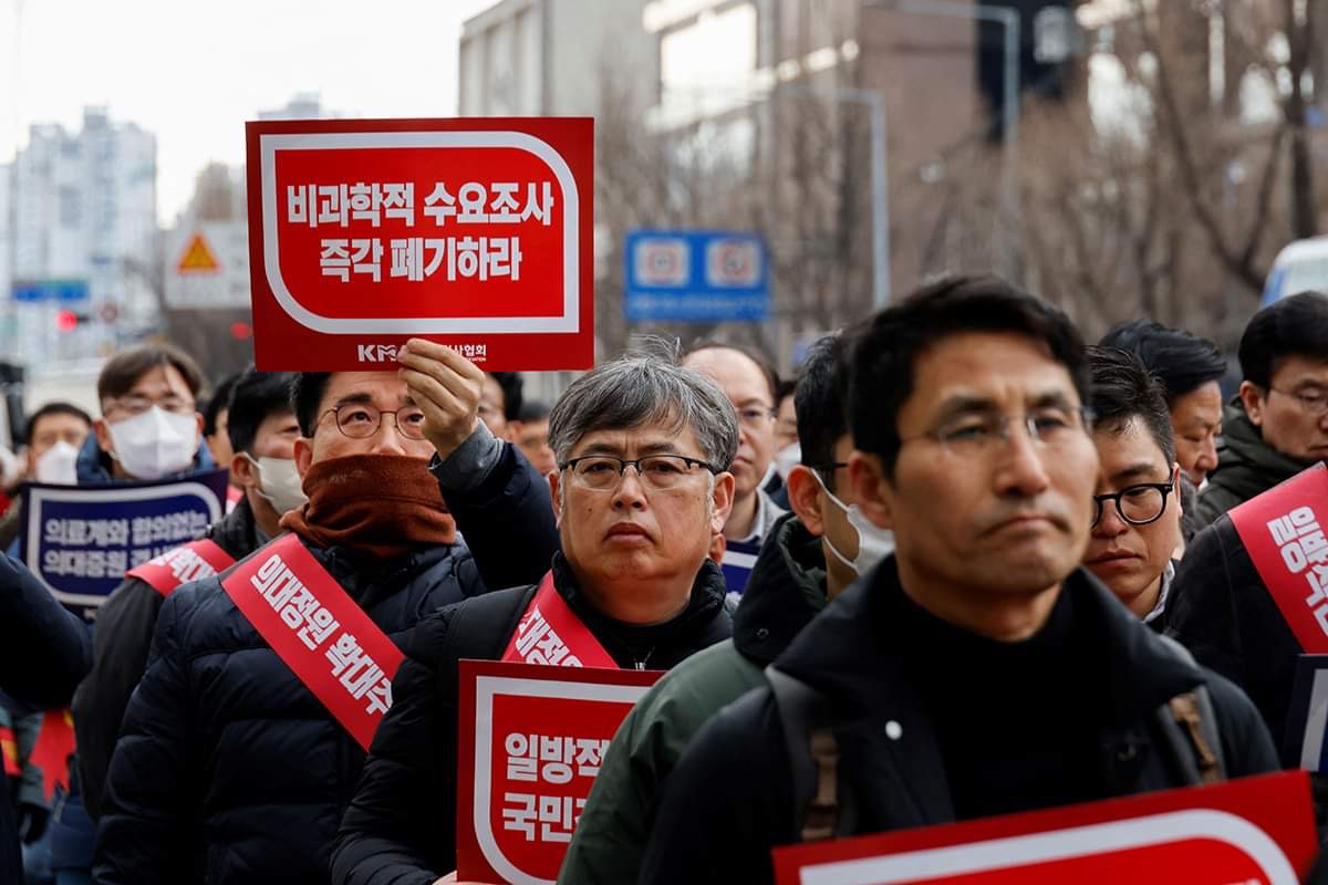 Өмнөд Солонгосын залуу эмч нар хоёрдугаар сарын 20-ны өдөр ажил хаялтаа эхлүүлсэн бөгөөд тэр үеэс хойш ихэнх нь ажилдаа эргэн ороогүй, мөн 10 мянган хүн ажлаас халагдах өргөдлөө өгчээ.