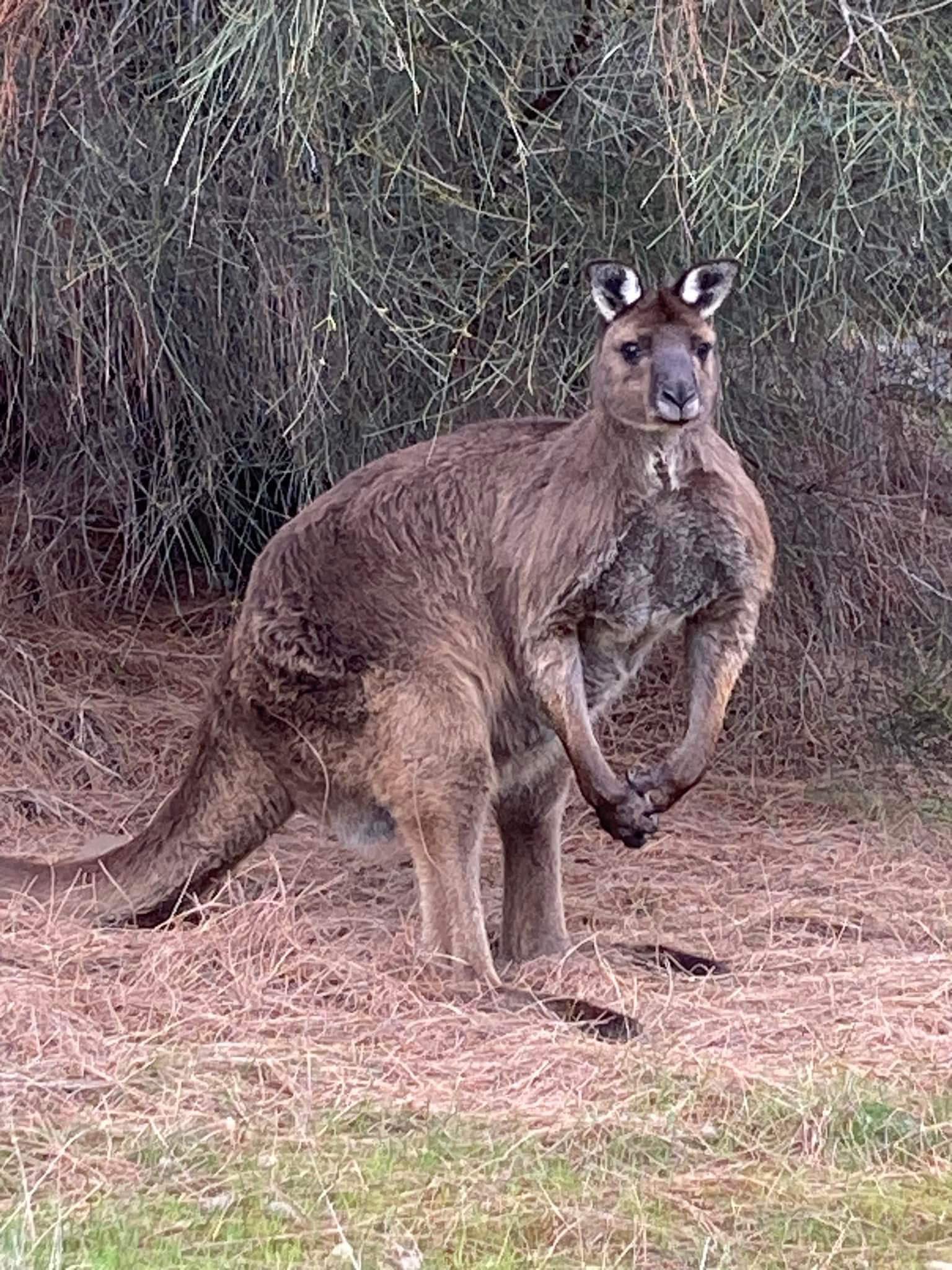 Кенгуру дөрвөн хөлтэй хэрнээ зөвхөн хойд хоёр хөл дээрээ харайж явдгийг уншигчид мэднэ. Урд хоёр хөл нь огт хөгжөөгүй мэт жигтэйхэн жаахан, явахад нь ямар ч үүрэг байхгүй. Гэхдээ олон зүйлд маш хэрэгтэй аж. Нүүр тулсан халз тулаанд бол өнөөх бонгинохон хоёр хөлөөрөө ёстой үзүүлж өгдөг. Богино хөл нь тун хорлонтой.