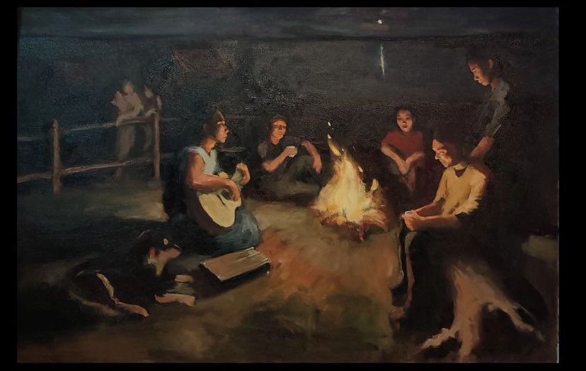 Бидний гитарын намуухан эгшиг, бидний дуулсан хайрын дуу… гээд мартагдашгүй гоё мөч байсан. Санаанаас хэзээ ч гарахгүй байх аа, тэр үе (инээмсэглэв). Найзуудын минь царай түүдгийн илч, сэтгэлийн аз жаргалдаа улаа бутарч суухад сарны мөнгөн туяа тусаж, нуурын мандал бидний дуулах дууг чагнах шиг мэлтийж байсныг дүрсэлсэн бүтээл байгаа юм. “Дурсамж” зургаа би уран бүтээлийн хэээхлэл, цаашид сурах, ажиллах, бүтээж амьдрах урмын галыг өрдсөн оч гэж хэлмээр байна.