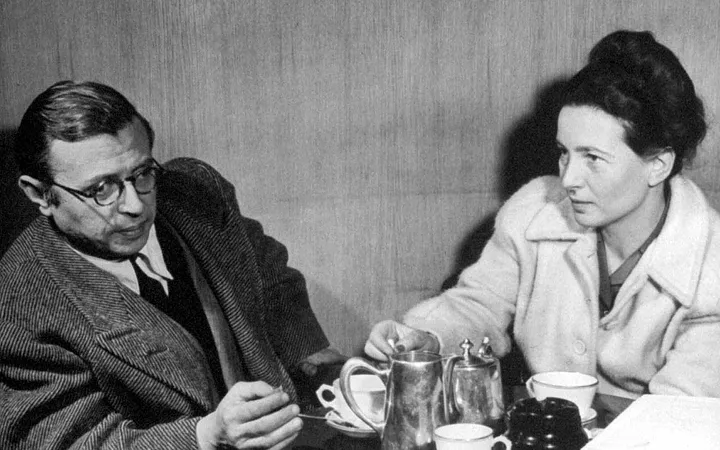 1929 онд Жан Поль ирээдүйн зохилч феминист үзлийг дэлгэрүүлэгч Симонатай танилцсан байдаг. Сартр түүний өөртөө итгэлтэй, дэгжин гадаад төрхөнд дурлаж, харин Симона Жан Полийн оюун ухаанд нь дурлаж амрагууд болсон гэдэг. Тэд хуучинсаг байхыг хүссэнгүй. Тэд бие биеэндээ эрх чөлөө олголоо. Тэрхүү эрх чөлөөний визийг хамгийн түрүүнд Жан Поль ашигласан юм. Берлинд сурж байхдаа тэрээр нэг оюутан нөхрийнхөө эхнэртэй жиг ургуулсан. Жан Полиос энэ мэдээг авсан Симона тэдний харилцааг “шалгахаар” Берлинд очиж тэдэнтэй уулзсан байдаг. Буцаж Парисдаа ирээд Симона өөрийн оюутан Ольгаг “ивээлдээ” авч гэртээ амьдрахыг урив. Удалгүй Берлинээс Сартр ирж тэд 3-уулаа амьдрах болжээ. Эхэндээ гэмгүй найзласан Сартр Ольга хоёр удалгүй амрагууд болов, Симона ч удаан ажиглаж суулгүй тэдэнтэй нэгдэж тэд жинхэнэ утгаараа гурвуулаа амьдрах болсон юм. Дөрвөн жилийн дараа Ольга тэднийхээс явсан. Гэвч Симона Сартр хоёр гучин жилийн туршид Ольгад сэтгэл санааны болон материаллаг тусламж үзүүлж байв.