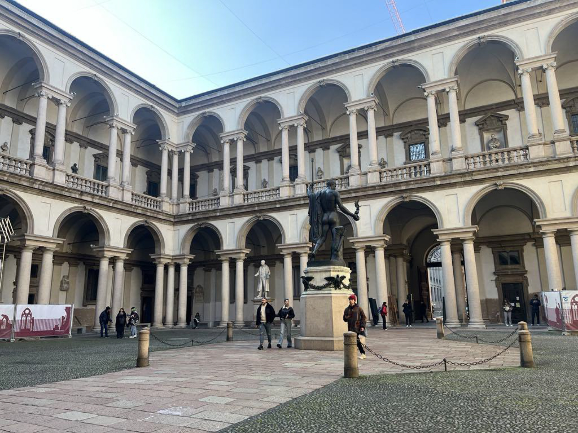 - Хамгийн доод давхарт нь маш эртний баялаг цуглуулгатай “Библиотека Ди Брера” буюу “Брерагийн номын сан” байрладаг. Номын санд нь хэд хэд очиход ямагт дүүрэн байх юм билээ. Хүссэн хүн бүр очиж ном үзэж, ажлаа хийгээд суухад нээлттэй. Сургуулийнхаа нэг давхарт дан хичээлийн танхимуудад хичээл сургалтаа явуулдаг.