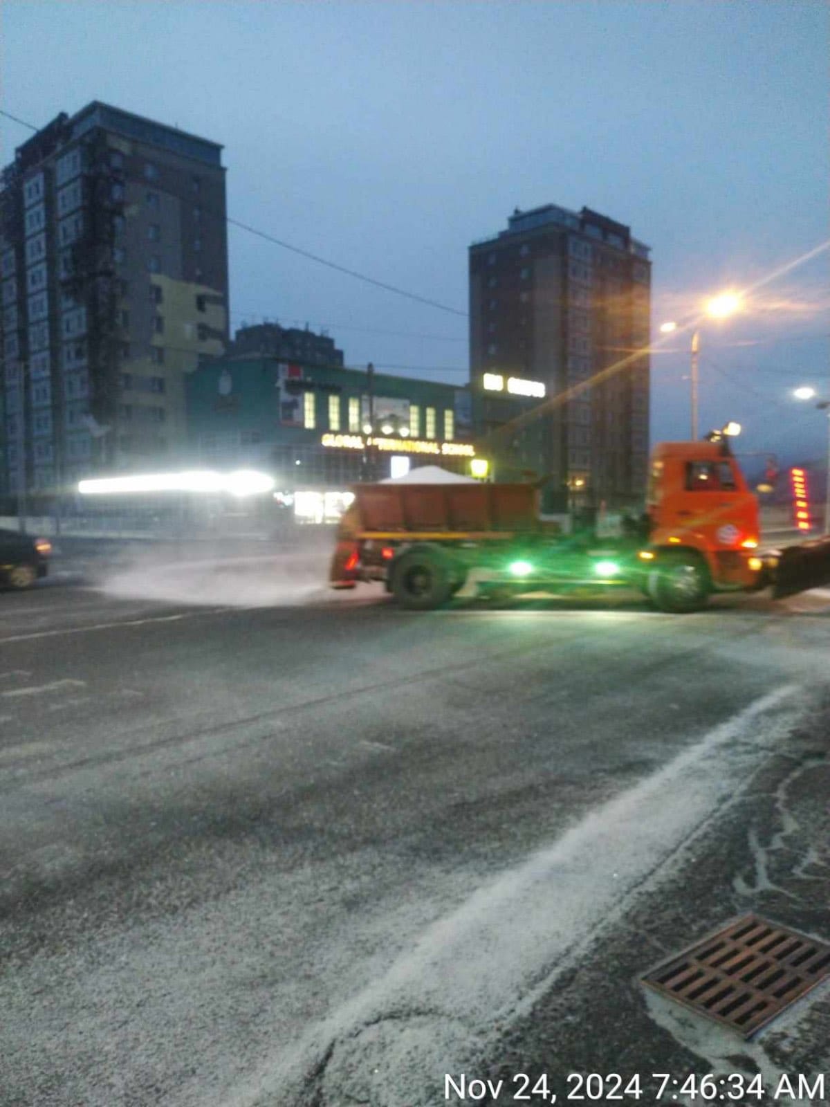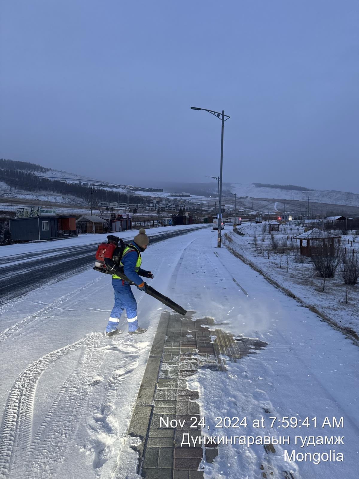 Нийтийн эзэмшлийн зам талбайн цэвэрлэгээний 6 байгууллага 28 техник хэрэгсэл, 260 хүний бүрэлдэхүүнтэй бэлэн байдлыг ханган ажиллаж авто замын зорчих хэсэгт халтиргаа гулгаанаас сэргийлж 68 тн бодис, 35 тн давс цацаж ажиллаа. Нийтийн эзэмшлийн зам талбайн цэвэрлэгээ, цас хусах, давс бодис цацах ажил үргэлжлэн явагдаж байна.