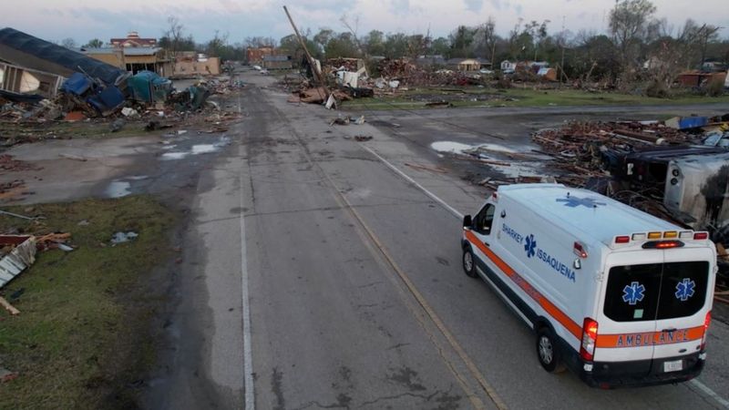 Миссисипи мужийн Засгийн газар онц байдал зарлаж, амьд үлдэгсдийг хайж аврах өргөн цар хүрээтэй ажиллагааг явуулж байна. Тус мужид амь үрэгдэгсэд, бэртэж гэмтэгсдийн тоо нэмэгдэх төлөвтэй. Торнадо салхинаас гадна аадар бороо, гольфын бөмбөгний дайтай мөндөрт хөдөө орон нутгийн жижиг хотууд хамгийн ихээр өртсөн аж. Хоёр мянга орчим оршин суугчтай Роллинг Форк хот газрын хөрснөөс үндсэндээ арчигджээ. Тус хотын оршин суугч Бренди Шова “Би ийм аймшигтай сүйтгэлийг амьдралдаа анх удаа харж байна. Цэвэрхэн, тухтай жижиг хот маань үгүй боллоо” гэжээ.