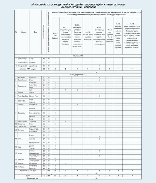 2023 онд нөхөн сонгууль болох сум, аймаг, дүүргийн мэдээлэл