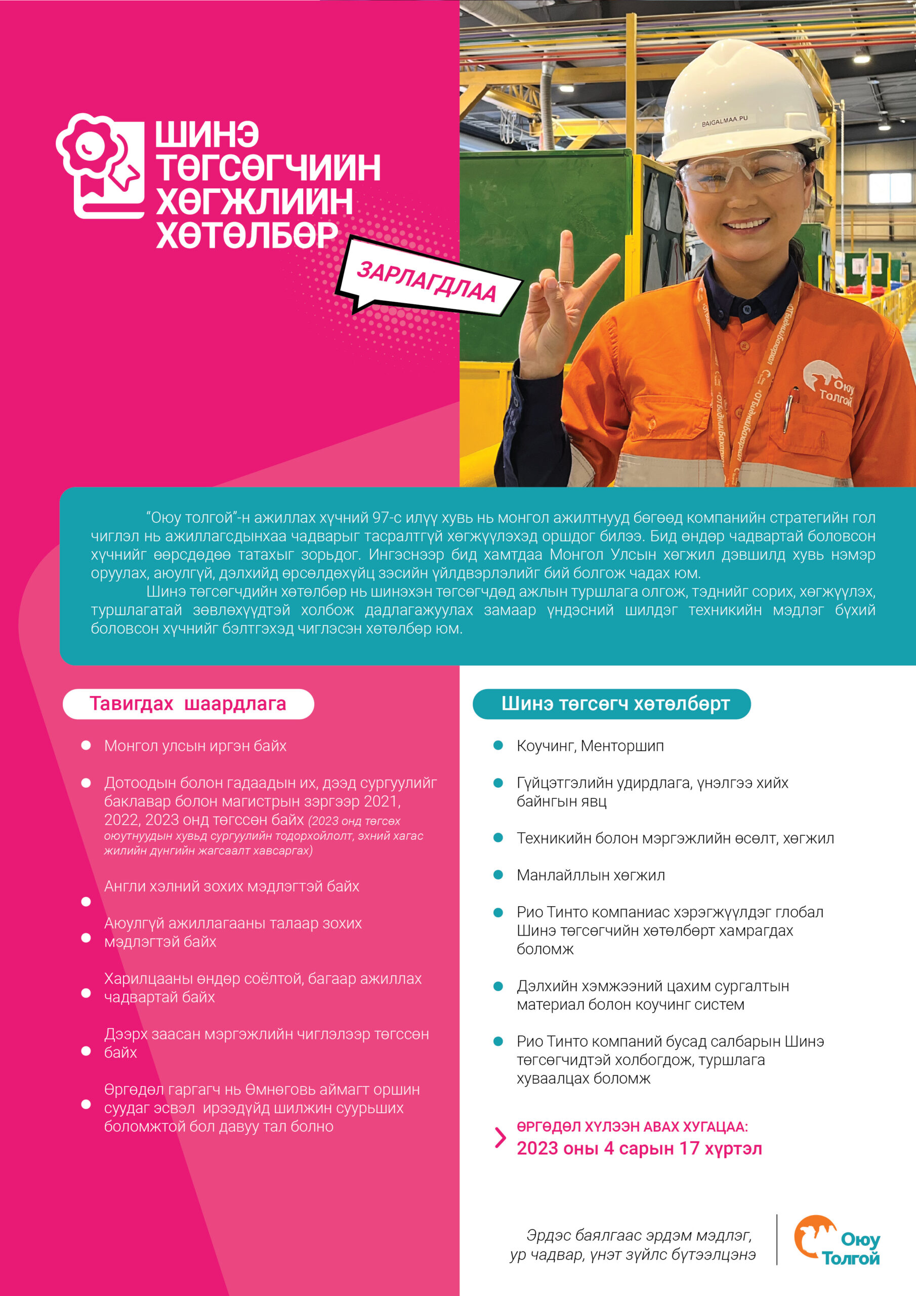 Оюу толгойн менежментийг гүйцэтгэгч “Рио Тинто” компани Оюу толгойг дэлхийн хамгийн орчин үеийн уурхай болгохын төлөө олон улсын тэргүүн туршлага, орчин үеийн дэвшилтэт техник, технологиор хөрөнгө оруулж байна. Оюу толгой аюул осолгүй ажлын байр бий болгож, хүрээлэн байгаа байгаль орчноо хамгаалах шинэ стандарт тогтоохын төлөө ажилладаг.