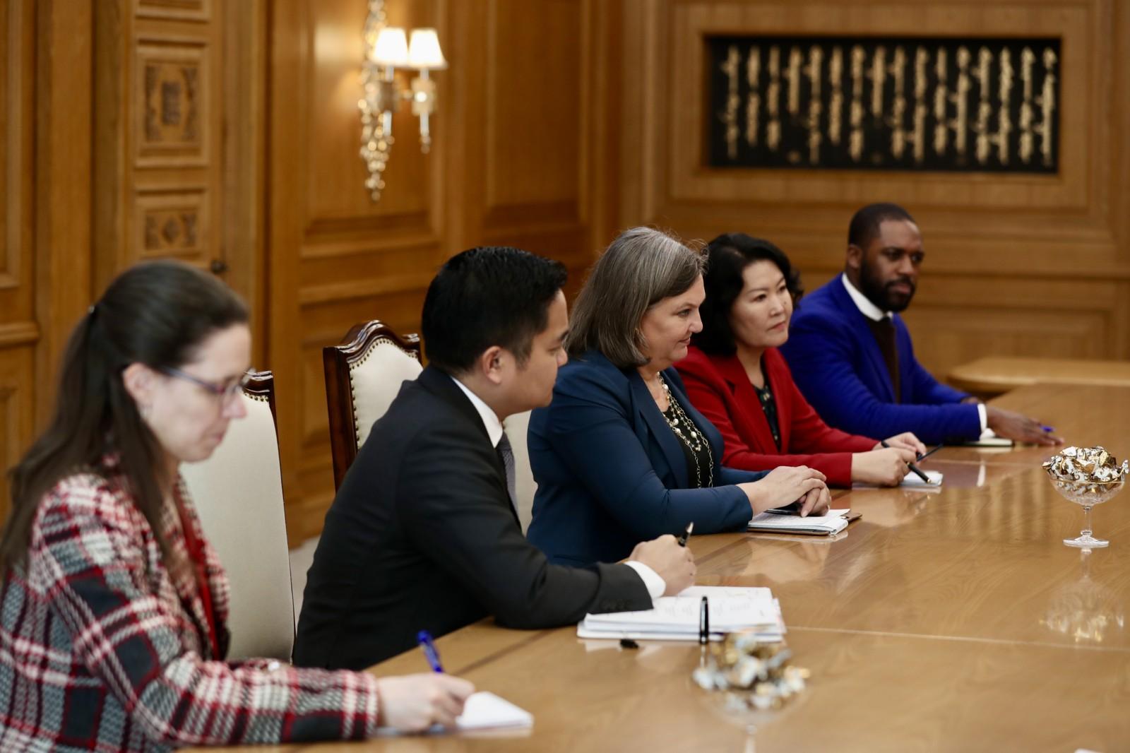Монгол Улсын Ерөнхий сайд Л.Оюун-Эрдэнэ АНУ-ын Төрийн нарийн бичгийн даргын Улс төрийн асуудал эрхэлсэн орлогч Элчин сайд Виктория Нуландыг 2023 оны дөрөвдүгээр сарын 19-ний өдөр хүлээн авч уулзлаа.