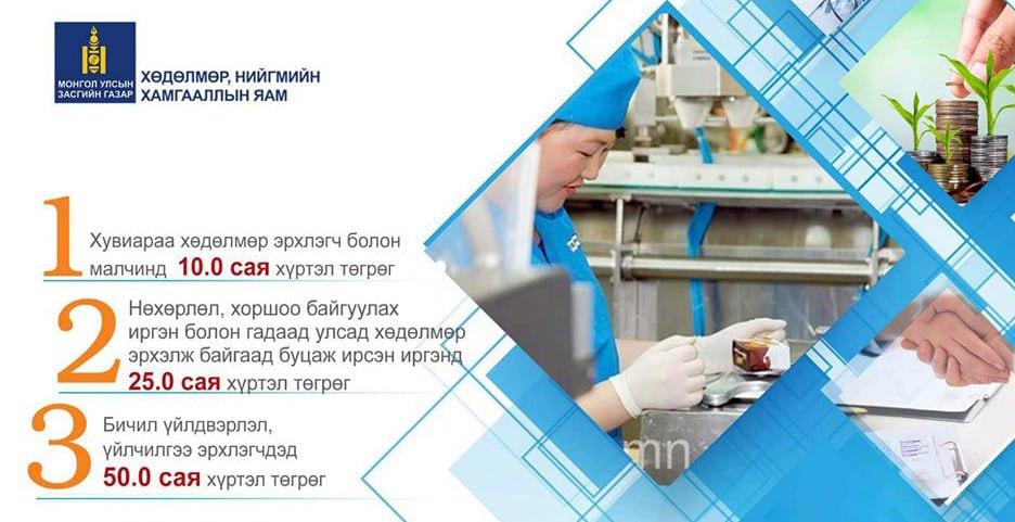 Засгийн газрын 2021 оны 340 дүгээр тогтоолын хавсралтаар баталсан Хөдөлмөр эрхлэлтийг дэмжих сангаас жижиг зээл олгох, түүнд батлан даалт гаргах, хүүг нь нөхөн төлөх, санхүүгийн дэмжлэг үзүүлэх журам”-ын дагуу хувиараа хөдөлмөр эрхлэгч болон малчинд 10.0 сая хүртэл төгрөг, нөхөрлөл, хоршоо байгуулах иргэн болон гадаад улсад хөдөлмөр эрхэлж байгаад буцаж ирсэн иргэнд 25.0 сая хүртэл төгрөг, бичил үйлдвэрлэл, үйлчилгээ эрхлэгчид 50.0 сая хүртэл төгрөгийн зээл олгодог юм.
