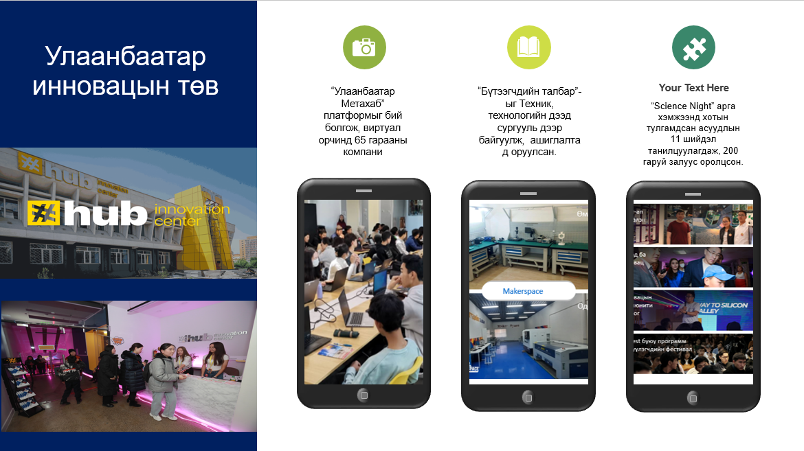 Жижиг, дунд үйлдвэр, үйлчилгээ эрхлэгч нарын ажлын байрыг нэмэгдүүлэх, тэдгээрийн эдийн засагт эзлэх хувь оролцоог дээшлүүлэхэд нийслэлээс анхаарч ажиллаж байна. Тухайлбал, Улаанбаатар инновацын төв болон Баянхошуу бизнес инкубатор төвөөр дамжуулан бизнес эрхлэгч, энтрепренер залуусыг дэмжин ажилласны дүнд гарааны 46 компанийг бойжуулан гаргаж, 400 гаруй ажлын байрыг бий болгоод байна. Мөн гарааны бизнес эрхлэгчид орчин үеийн дэвшилтэт техник, технологийн тусламжтайгаар бүтээгдэхүүнийхээ анхны загварыг турших орон зай бүхий “Бүтээгчдийн талбар”-ыг байгуулж, хөрөнгө оруулагчдад бүтээгдэхүүний загвараа танилцуулж, эхлэлийн санхүүжилт авах боломжийг бүрдүүллээ.
