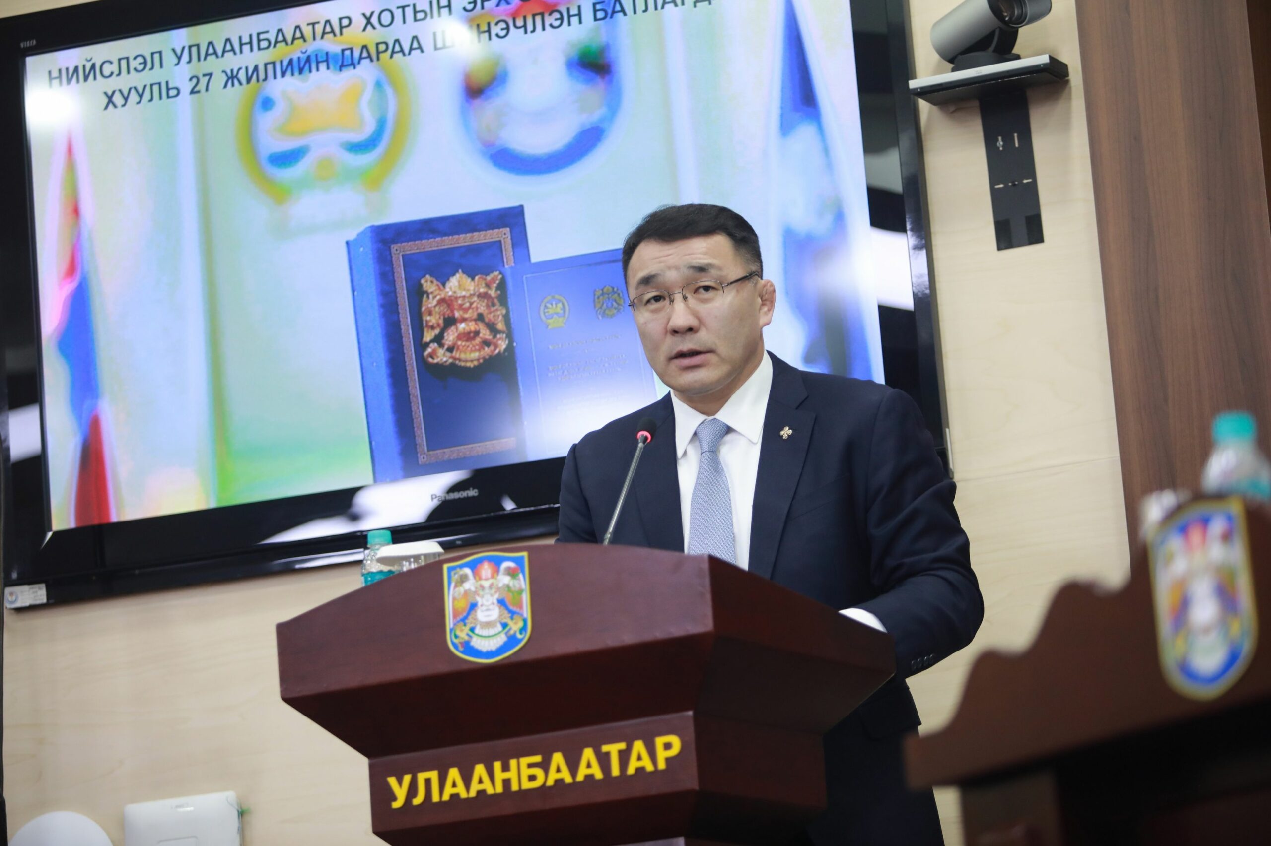 Тэрбээр “Нийслэл Улаанбаатар хотыг хөгжүүлэхийн төлөө хамтран хэрэгжүүлж байгаа үйл ажиллагааны явцын талаар мэдээлэхдээ таатай байна. Юуны өмнө хоттой холбоотой харилцааны суурь зохицуулалтыг агуулсан Монгол Улсын нийслэл Улаанбаатар хотын эрх зүйн байдлын тухай хуулийг 27 жилийн дараа шинэчлэн батлуулсан талаар онцлох ёстой. Эрх зүйн энэхүү шинэтгэлийн хүрээнд нийслэл Улаанбаатар хотод тулгамдаж буй асуудлыг шийдвэрлэх, санхүүгийн бие даасан байдал хангагдах болон цаашдын хөгжлийг тодорхойлох шинэлэг зохицуулалтууд бий болсон.