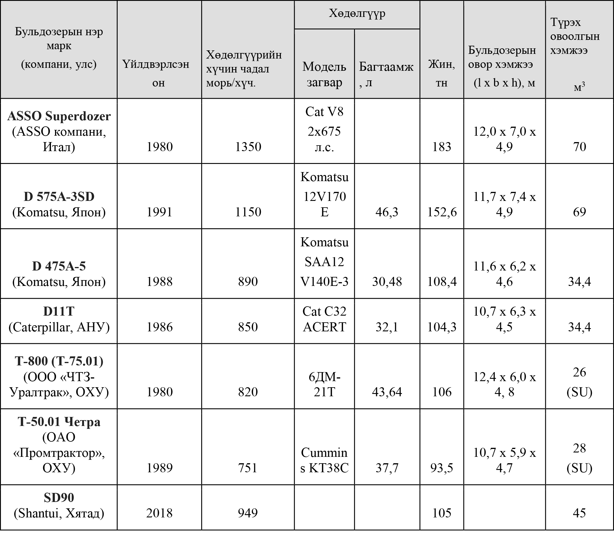 Өнөөдөр манай гариг дээр хөдлөж үйл ажиллагаа явуулж байгаа хамгийн том бульдозер бол KOMATSU D575A-3 SD загварын бульдозер юм. Түүнийг Super Dozer гэж нэрлэдэг. 1989 оноос үйлдвэрлэж эхэлсэн хүнд машин механизмууд дундаа хамгийн хүнд жинтэйд тооцогдож байна. Ашиглалтын жин нь 153тн, хөдөлгүүрийн хүчин чадал нь 1150 морины хүчтэй, түрэх овоолгын багтаамж нь 69м3. Дизель хөдөлгүүр нь 12 цилиндертэй, нэмэлт трубо үлээгчтэй, түлшний савны багтаамж 2100 литр хүрдэг. Хойш урагш хөдлөх гурван хурдны араатай бульдозерын урт нь 11.72м.