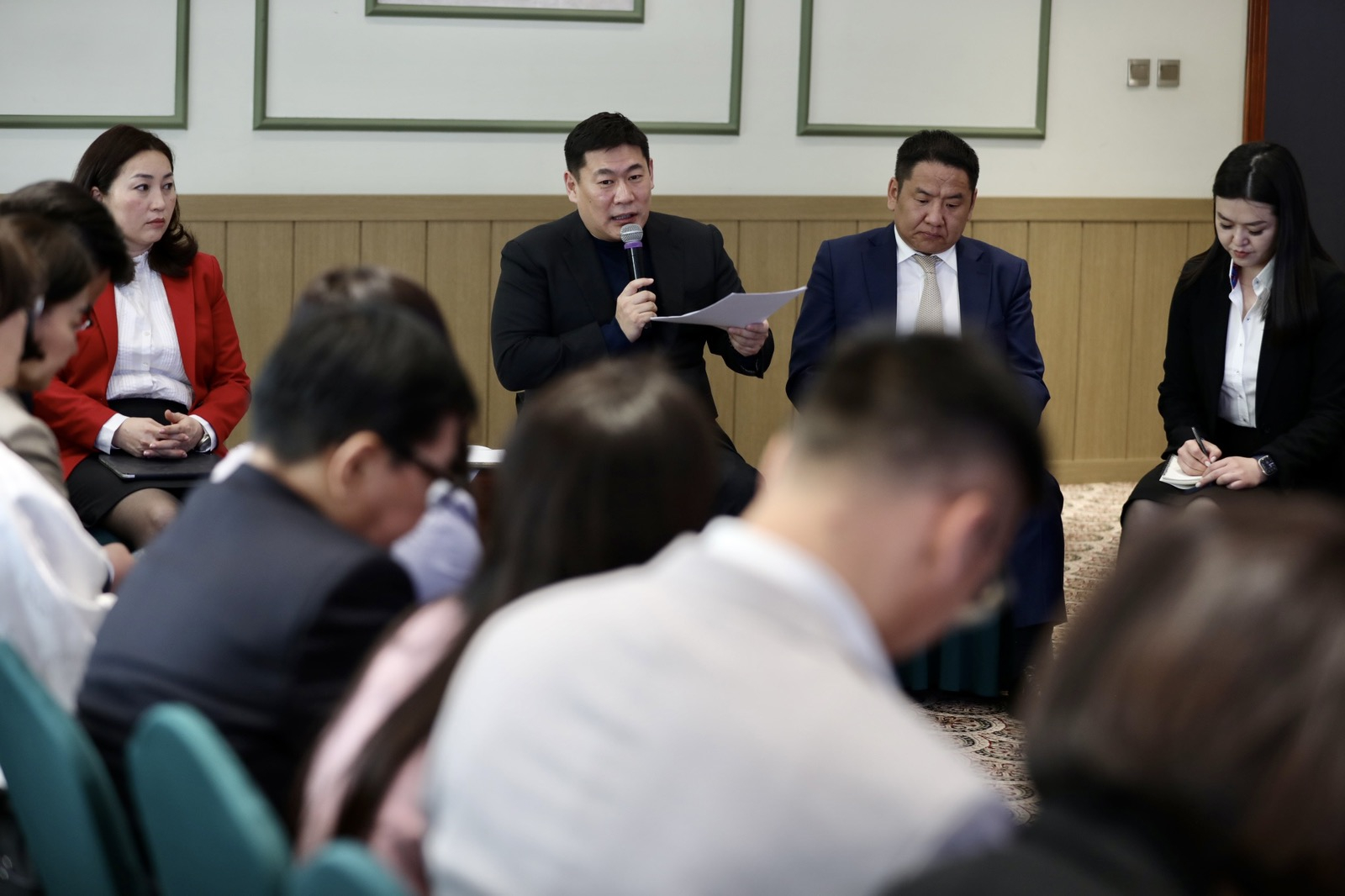 Монгол Улсын Ерөнхий сайд Л.Оюун-Эрдэнэ ээлжит “Өглөөний уулзалт”-аа аж ахуйн нэгжүүдийн хүний нөөцийн менежерүүдтэй хийлээ. Уулзалтад Сангийн сайд Б.Жавхлан, ХНХ-ын сайд Х.Булгантуяа болон тус яамны газрын дарга нар банк санхүү, уул уурхай, барилга, хүнс, эрүүл мэнд, үйлчилгээний салбарын хүний нөөцийн мэргэжилтнүүд, мэргэжлийн холбоодын төлөөлөл оролцлоо.