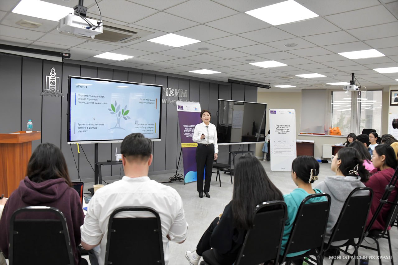 Залуу сэтгүүлчид, иргэний нийгмийн байгууллагын төлөөллийг хамруулж буй энэхүү сургалтын цогц үйл ажиллагаа нь хоёр өдрийн танхимын сургалт, гурван долоо хоногийн бямба гаригийн зочны лекц, Улсын Их Хурлын үйл ажиллагаатай танилцах болон сэтгүүл зүйн бүтээл туурвих гэсэн бүрдлүүдээр үргэлжлэх юм. Үндсэн сургалт буюу хоёр өдрийн танхимын сургалт өчигдөр (2023.06.03) эхэлж, Монгол Улсын төрийн эрх мэдлийн хуваарилалт, хяналт-тэнцэл, парламентын ардчилал, Улсын Их Хурлын хяналт шалгалтын үүрэг, хариуцлага, эрх зүйт ёс, Үндсэн хуулийн эрх зүй зэрэг өргөн хүрээтэй сэдэв, агуулгаар Монгол Улсын Ерөнхийлөгчийн зөвлөх, доктор А.Бямбажаргал, Үндсэн хуулийн цэцийн гишүүн, доктор Д.Гангабаатар, Улсын Их Хурлын Тамгын газрын Хяналт шалгалт, үнэлгээний газрын Хяналт шалгалтын хэлтсийн дарга Ж.Лхагвасүрэн, Улсын дээд шүүхийн шүүгч, доктор Ц.Цогт, Хүний эрхийн Үндэсний Комиссын гишүүн, доктор Д.Сүнжид нар хичээл орлоо.