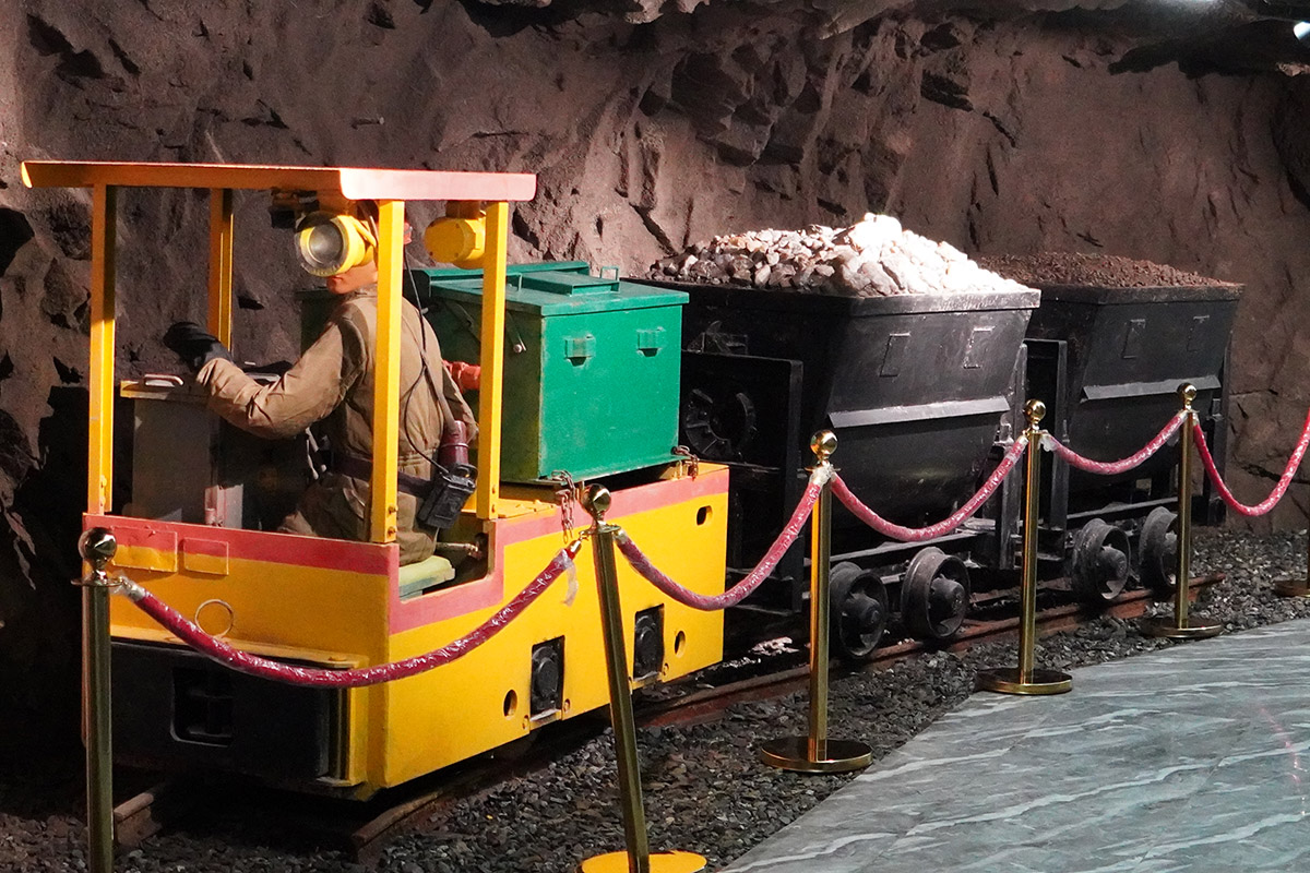 Хар азарганы цаахна талд өдгөө далд уурхайд өргөн ашиглаж буй тээвэрлэх техникийг байрлуулжээ. Өрөмдлөгийн үйл явцыг харуулсан хоёр хэмжээст дүрслэл, гэрэл зургууд, өрмийн эд анги, эмнэлгийн тусламж үйлчилгээг харуулсан хэсгийг сонирхож явсаар доороо төмөр авдар маягийн зүйл суурилуулсан модон хашлагын дэргэд ирлээ. Бэрхийн уурхайн ажилчдын бие засах газар гэнэ. Далд уурхайн тээвэрлэлтийн зориулалттай ачигч машин, тэргэнцрийг төмөр зам дээр суурилуулсан нь сонирхол татахуйц содон юм.