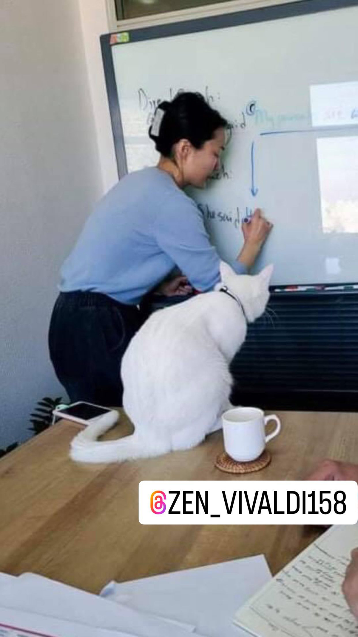 Муураа авчирснаа хэлтэл муурнаас айдаг л гэж байна. За тэгээд манай өрөөнд орж ирэх юм болов. Нэлээд болгоомжлонгуй шагайж Зэнг харснаа “Өө, ийм царайлаг муурнаас айхгүй ээ” гэсэн чинь манай Зэн царайлаг гэдэг үгийг нь сонсонгуутаа гүйгээд оччихсон. Өөрийг нь дуудаж байна гэж бодсон байх (инээв). “Би муураа бурханаас гуйсан юм аа” гэхээр бүр нэг бурхан өгсөн юм шиг царай гаргана. Мууртайгаа энэ мэтээр харилцахыг байнга сонсдог хүмүүс бол манай хөршүүд. Хамгийн гайхалтай нь хөршүүд маань нохойтой болчихсон. Ажил тарах дөхөхөөр манай хоёр хаалга руу хараад хүлээгээд суучихдаг. Гэр рүүгээ яарах шалтгаан болдог доо, Зэн, Грейс хоёр.