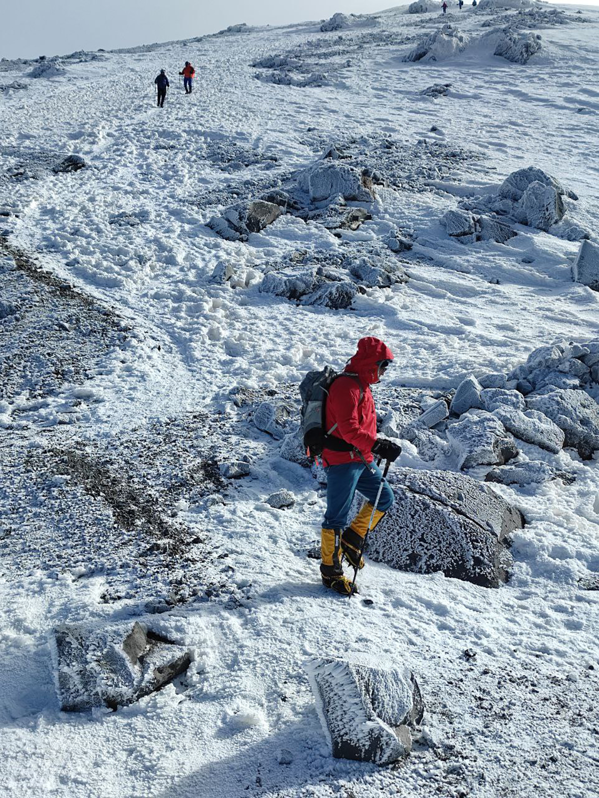 Ууландаа очихоороо Өсөхөө уул мэт болон хувирдаг! Тэрбээр, олон жилийн өмнөөс мөрөөдсөн оргилынхоо яг дор оччихоод биднийг хүлээж эхэлсэн. “Энэ хүйтэнд юугаа хийгээд зогсоод байгаа юм бэ, дээш авираач!” л гэмээр.