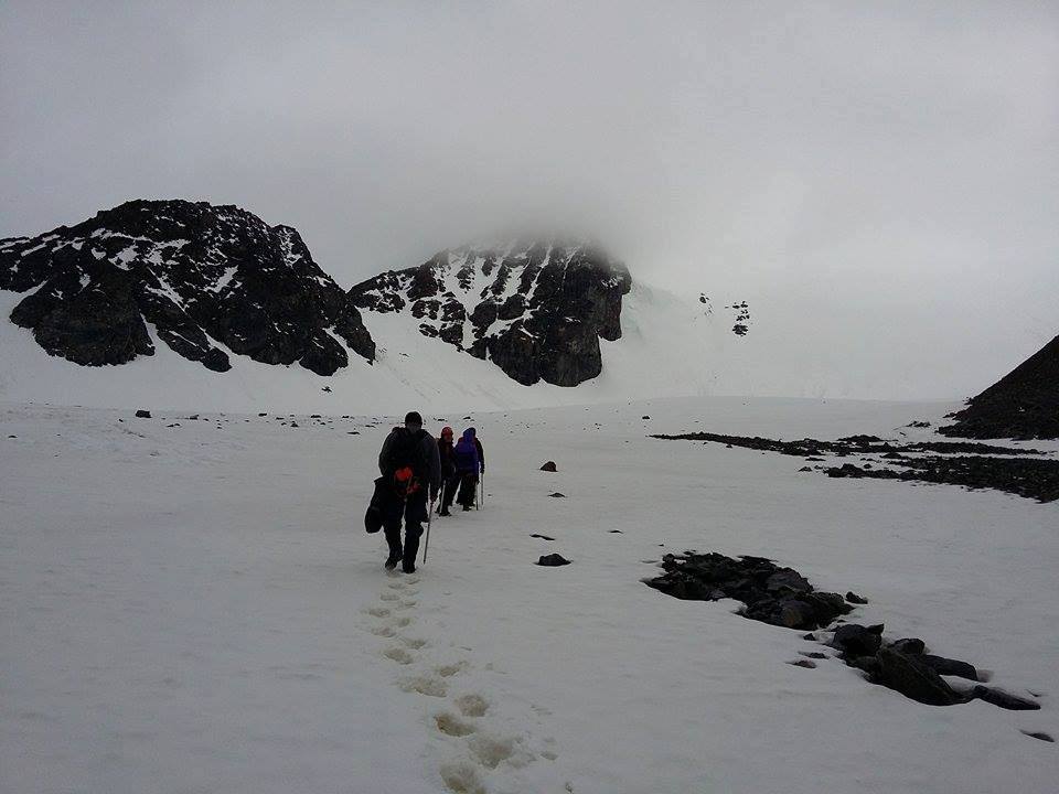 Өгсөх тусам уур амьсгал хүйтэн болж, орж байсан бороо цас болон хувирч, сүүлдээ бүр шуурч эхэлсэн. Бид өгссөөр 3700 метрт хүрэхэд цас нүүр нүдгүй шуурч, зам харагдахаа больсон юм. Цасан шуурга намдахыг хэсэг зуур хүлээзнэсэн ч, хөдөлгөөнгүй ахиад жаахан удахад л хөл гараа ч хөлдөөж мэдэхээр хүйтэн салхитай байсан учир буцсан билээ. Явсаар отог дээрээ ирэхэд майхан гадаснаасаа мултарч хийсэн унасан байлаа. Нэлээд хүчтэй салхилсан нь илт.