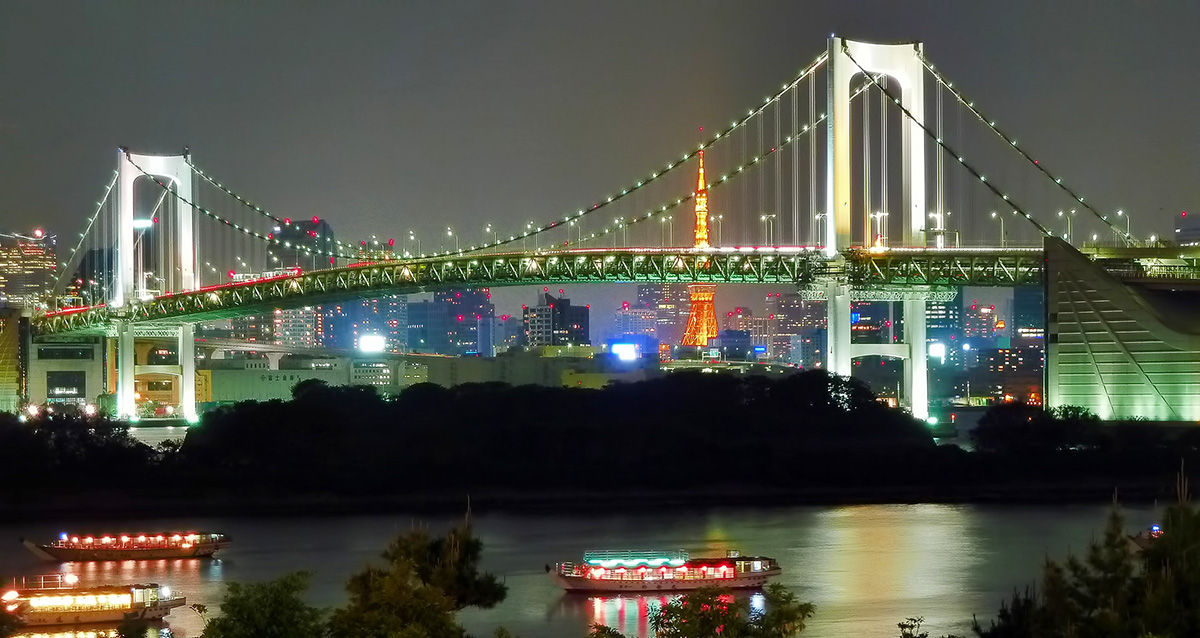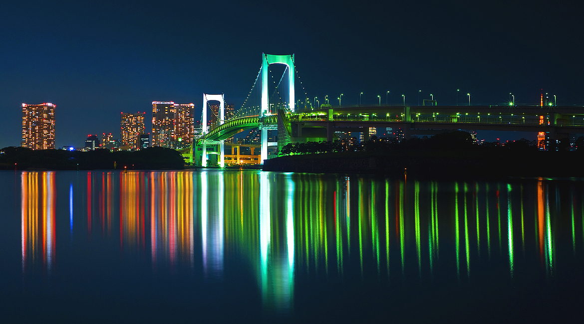 Удалгүй бид алдарт “Солонгон гүүр” олж харлаа. Шөнийн хотыг чимэх энэхүү аварга том гэрэлт гүүрийг давмагц хүний гараар бүтсэн хиймэл арал “Одайба” байдаг. Өмнө нь далай байсан газар өдгөө арал босчээ. Арлын “түүхий эд”-ийг хогноос гаргаж авсан гэнэ. Фүжи телевизийн төв байр үзэгдээд өнгөрөв. Энэ телевиз топ дөрөвт багтдаг, хэвлэл мэдээллийн “мангасуудын” нэг.