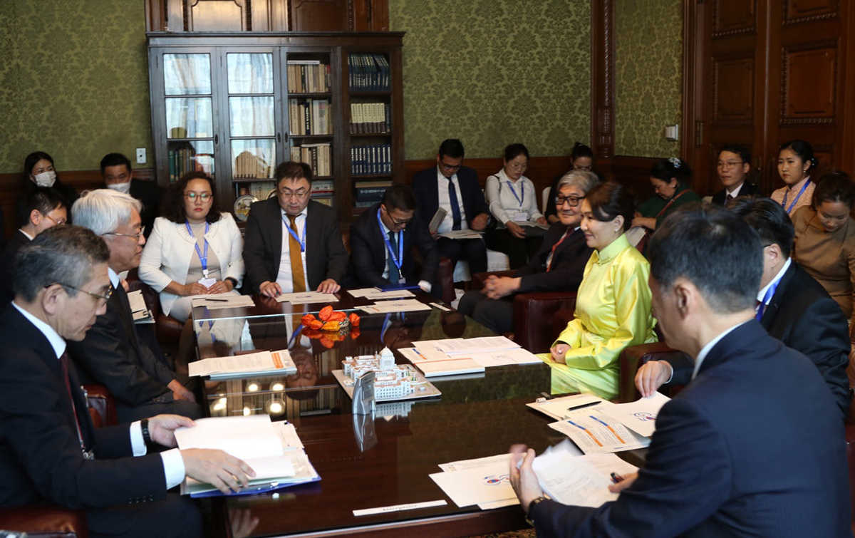 Л.Өлзийсайхан найрсаг хүлээн авч байгаад талархаад, Монгол Улсын парламентын хувьд Үндсэн хуульдаа өөрчлөлт оруулсан, УИХ-ын дарга Г.Занданшатар “Япон лугаа хөгжье” уриалга гаргаж, тус улсын хөгжлийн загвар, туршлагаас суралцах, сайн жишгийг нутагшуулахад ихээхэн анхаарал хандуулж буйг, Монголын парламентын өмнө тулгарч буй сорилт болон бүтэц, бүрэлдэхүүнд өөрчлөлт орж байгааг дурдав.