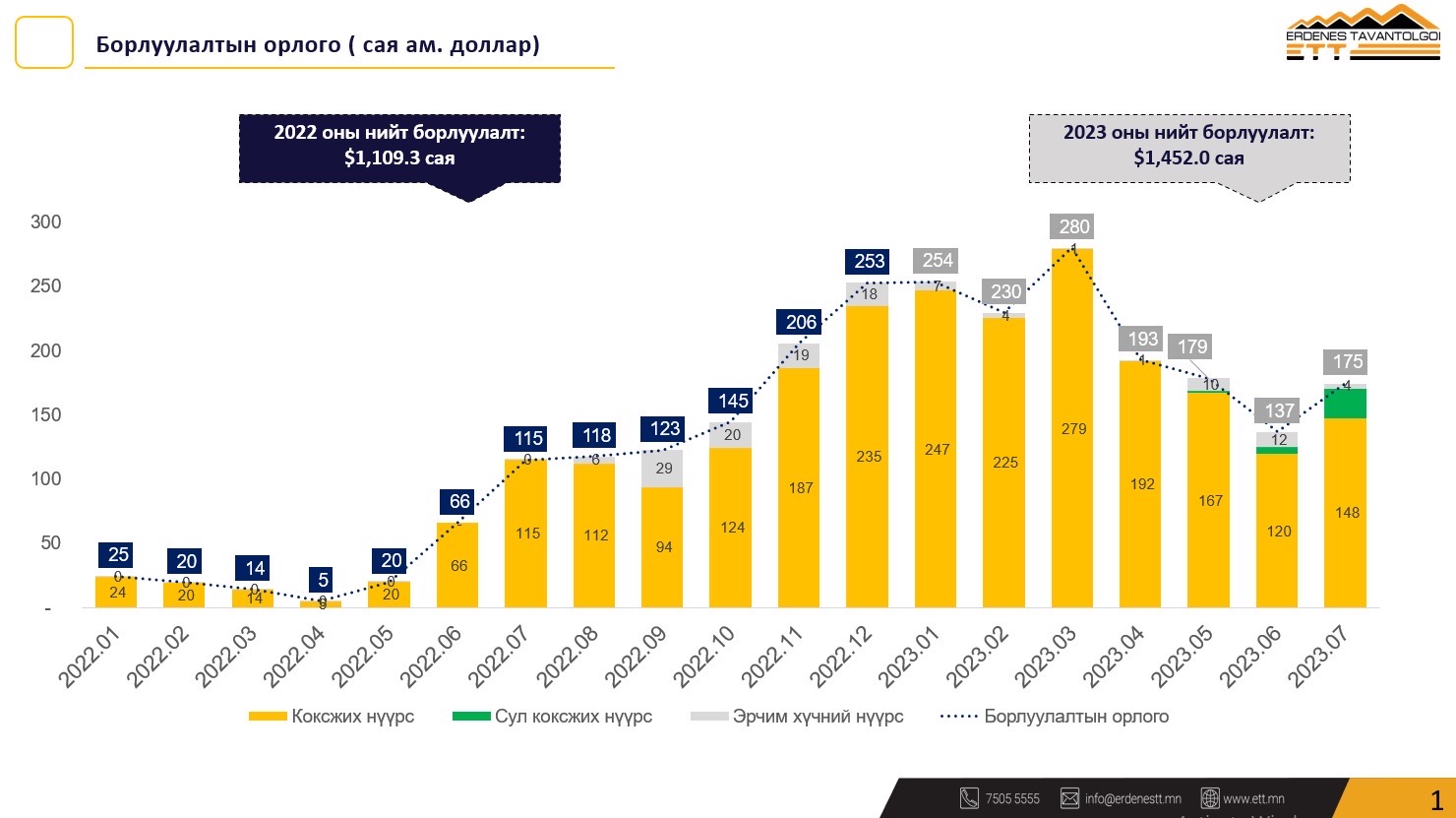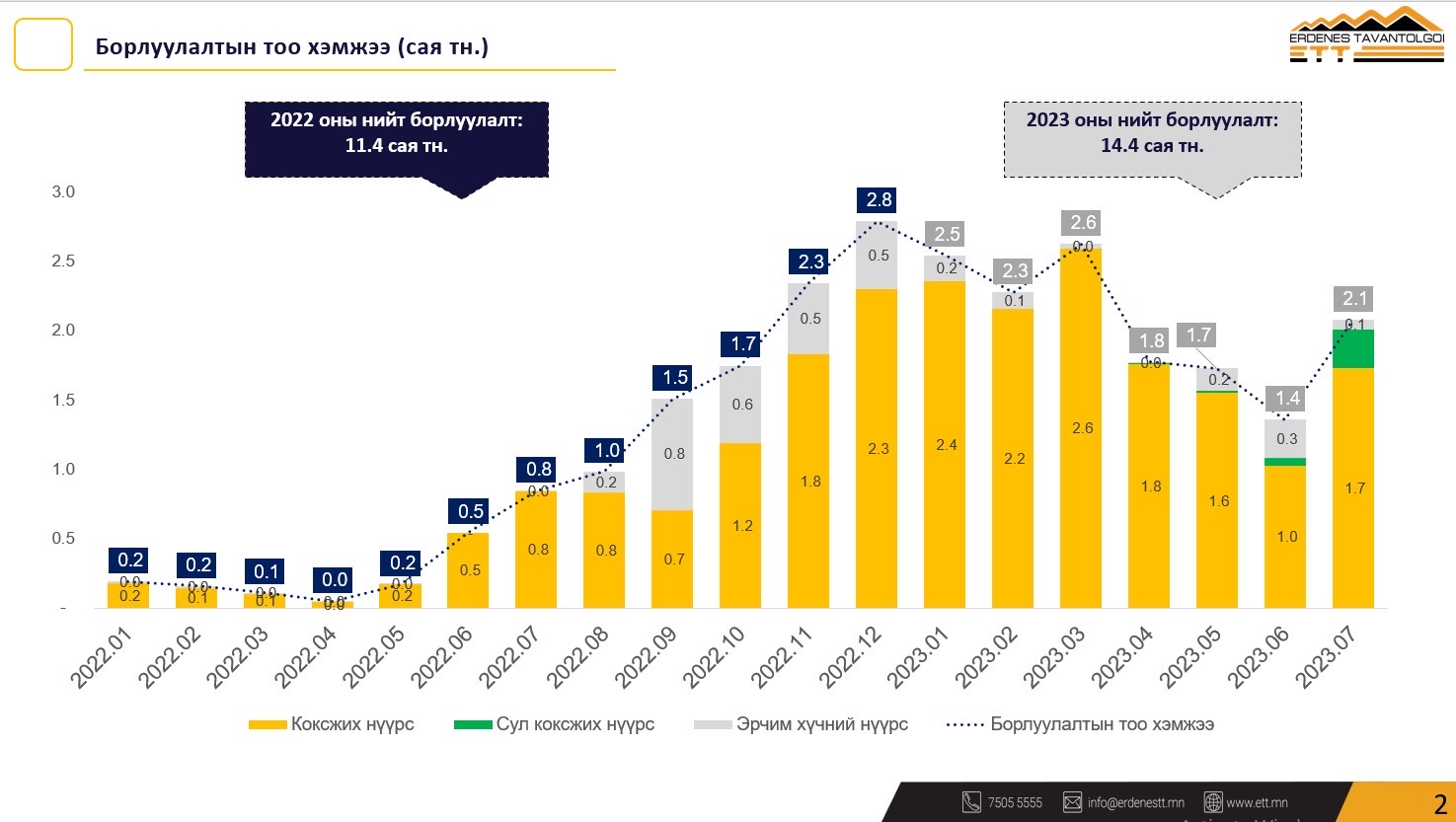“ЭРДЭНЭС ТАВАНТОЛГОЙ“ ХК 2023 ОНЫ ЭХНИЙ 7 САРЫН БАЙДЛААР 14.4 САЯ ТОНН НҮҮРС БОРЛУУЛАВ