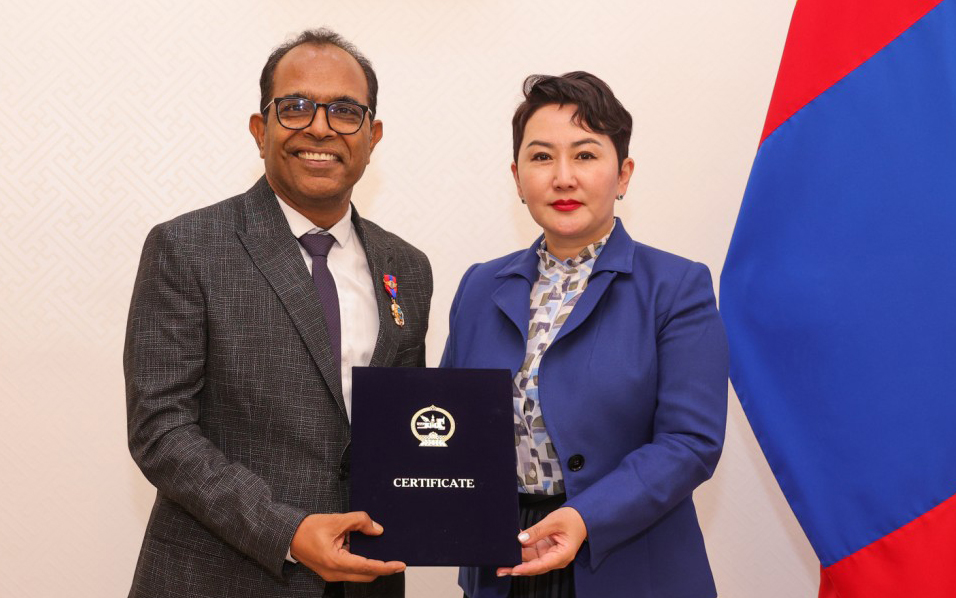 Монгол Улс НҮБ-ын Хүнс, хөдөө аж ахуйн байгууллагад гишүүнээр элссэний 50 жилийн ойг тохиолдуулан Монгол Улсын Ерөнхийлөгч У.Хүрэлсүхийн зарлигаар Монгол дахь НҮБ-ын Хүнс, хөдөө аж ахуйн байгууллагын Суурин төлөөлөгч Винод Ахужа-г “Найрамдал” медалиар шагнасныг Гадаад харилцааны сайд Б.Батцэцэг 2023 оны 8 дугаар сарын 21-ний өдөр гардуулан өглөө.