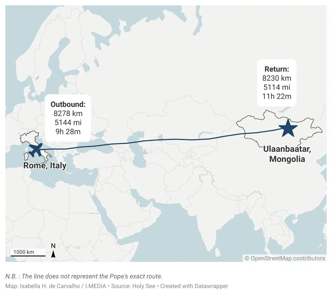 - 12:00. Ромын пап Францисын хөлөглөсөн “ITA Airways” компанийн тусгай онгоц “Чингис хаан” олон улсын нисэх буудлаас хөөрнө.