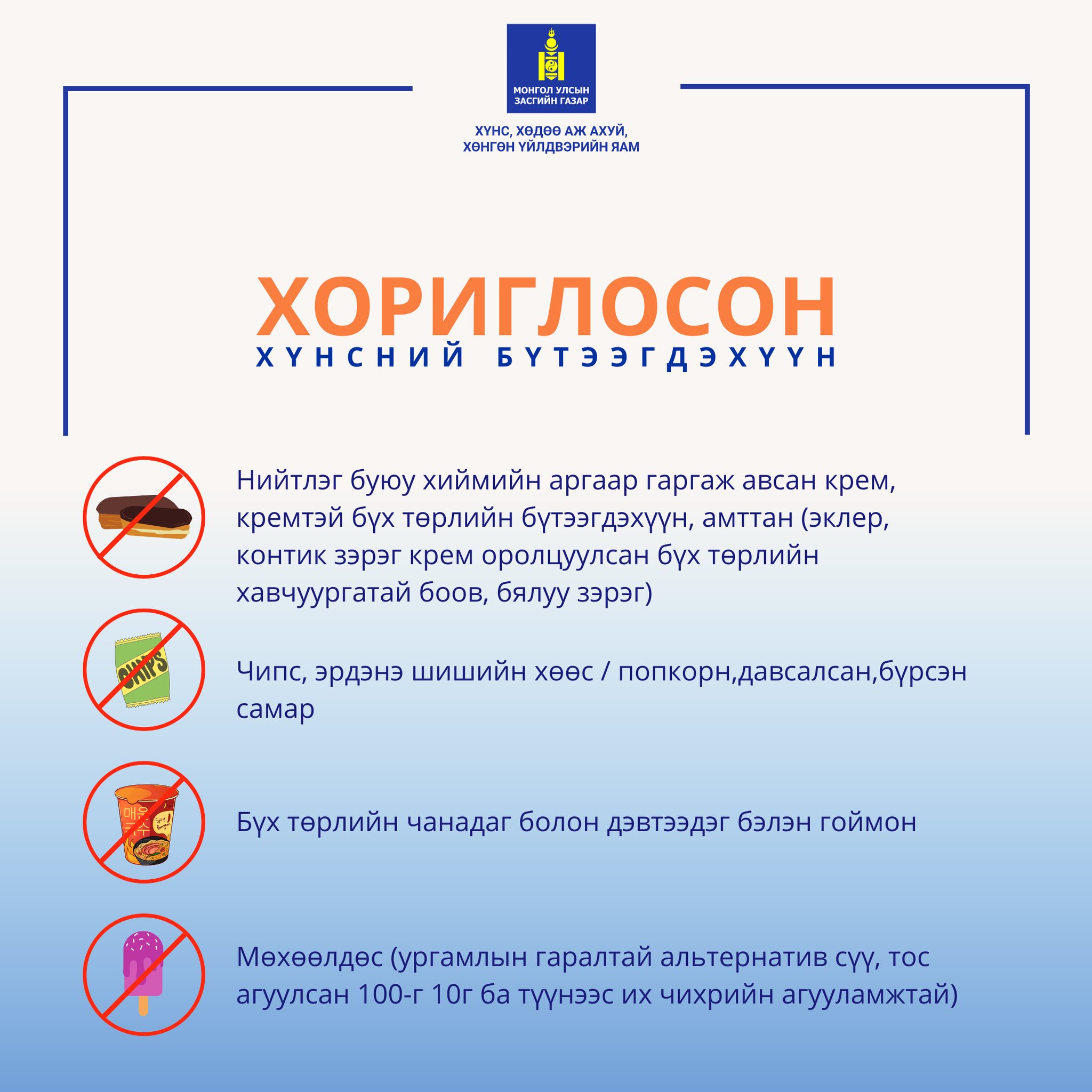 Энэ бүсэд хүүхдэд худалдаалахыг хориглосон хүнсний бүтээгдэхүүний жагсаалт.