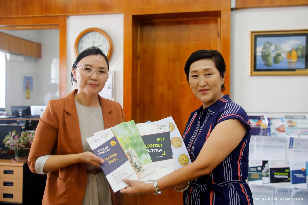 Улсын Их Хурлын Тамгын газрын Парламентын судалгаа, сургалтын хүрээлэнгийн захирал Ц.Цогзолмаа жендэрийн эрх тэгш байдлыг хангахад чиглэсэн 80 гаруй хэвлэмэл бүтээгдэхүүнээр Парламентын номын сангийн сан хөмрөгийг баяжуулж байгаад Жендэрийн үндэсний хорооны Ажлын албаны хамт олонд талархал илэрхийлээд цаашдын хамтын ажиллагаанд амжилт хүслээ. Мөн Парламентын судалгаа, сургалтын хүрээлэнгээс эрхлэн гаргадаг судалгаа, лавлагаа мэдээллийн эмхэтгэлийн дээжээс гардуулан өгөв.