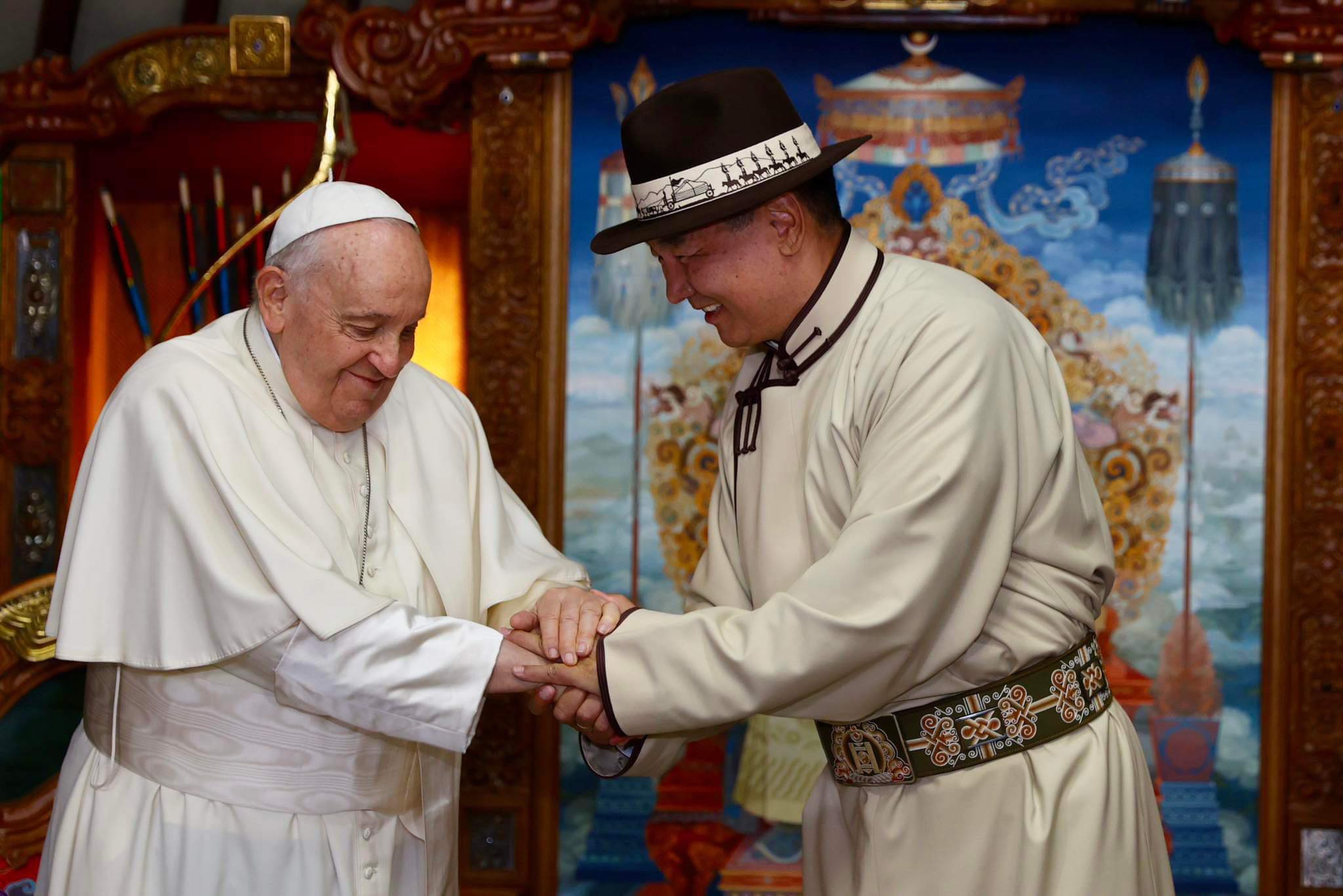 Монгол Улсын Ерөнхийлөгч Ухнаагийн Хүрэлсүхийн урилгаар Гэгээн Ширээт Улсын төрийн тэргүүн Пап Францис төрийн айлчлал хийж байна.
